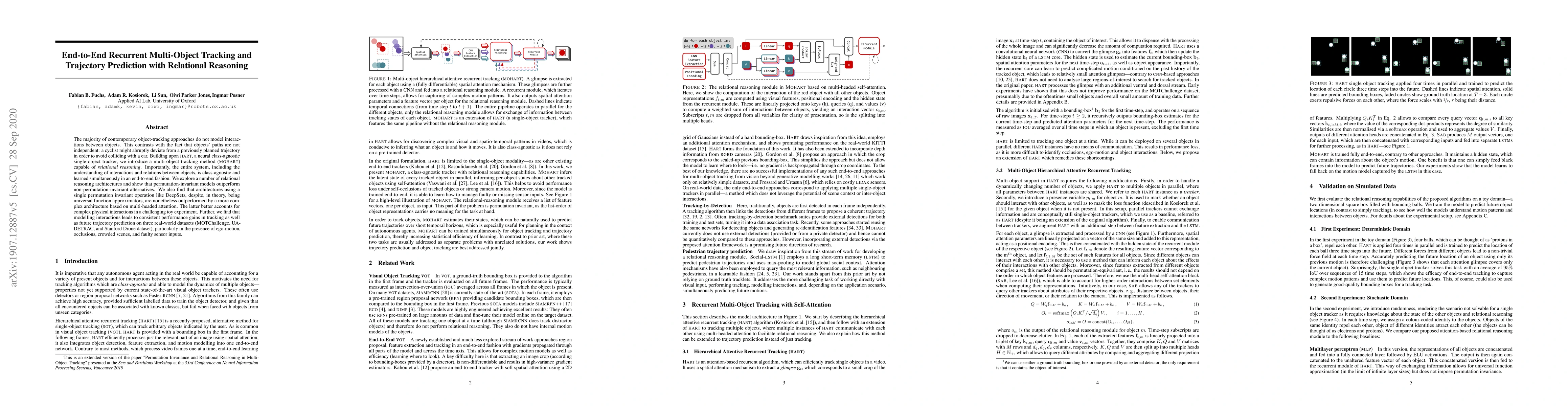 This paper introduces MOHART, an end-to-end neural network for multi-object tracking and trajectory prediction that incorporates relational reasoning to model interactions between objects. It demonstrates consistent performance gains across various challenging scenarios by using permutation-invariant architectures, with multi-headed attention outperforming simpler methods.