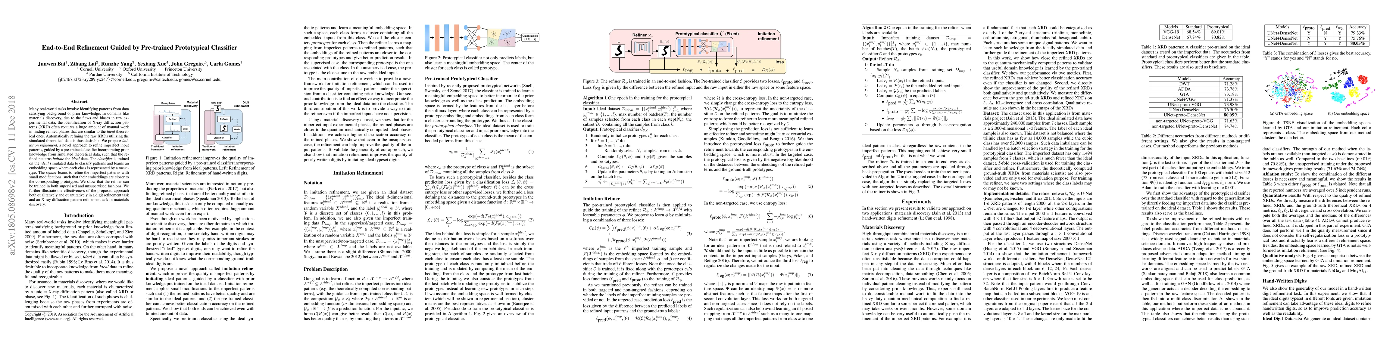 This paper proposes an imitation refinement method to automatically refine imperfect X-ray diffraction patterns using a pre-trained prototypical classifier that leverages simulated theoretical data. The refiner adjusts the patterns to match ideal prototypes, demonstrating effectiveness in both supervised and unsupervised settings through digit and XRD pattern refinement tasks.