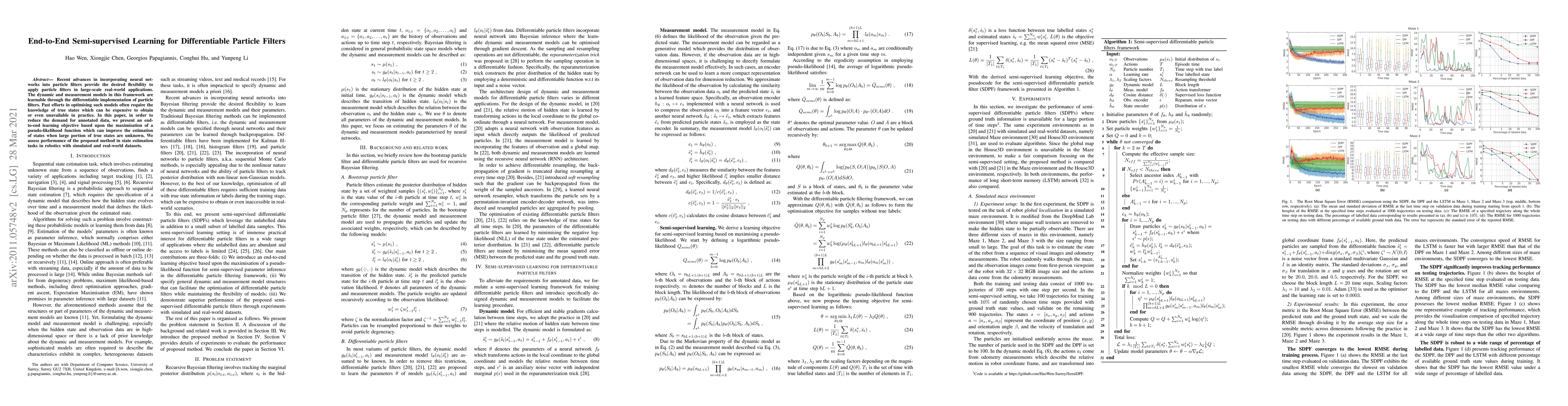 This paper introduces an end-to-end semi-supervised learning approach for differentiable particle filters, optimizing them using a pseudo-likelihood function to reduce reliance on annotated true states. The method is evaluated in robotics state estimation tasks with both simulated and real datasets.