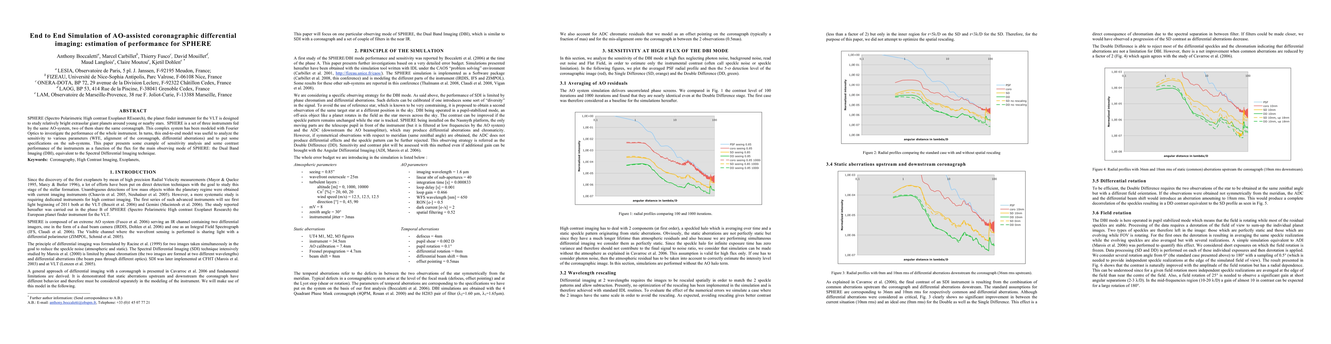 This paper models the SPHERE instrument's performance using Fourier Optics, focusing on the end-to-end simulation of its coronagraphic differential imaging capabilities. It analyzes sensitivity to various parameters and provides contrast performance specifications for the Dual Band Imaging mode.