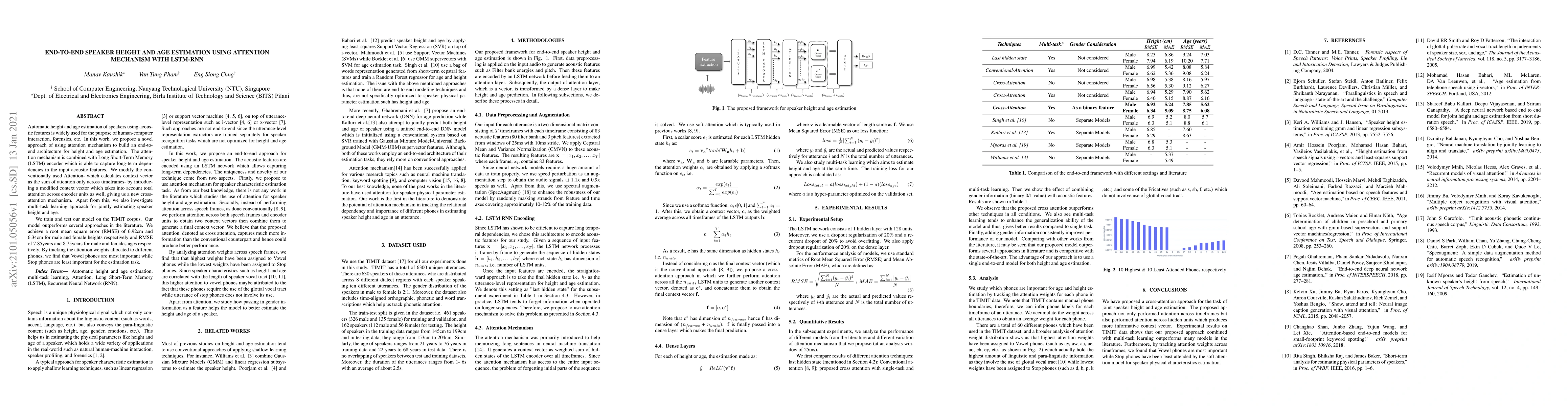 Researchers developed an end-to-end system for estimating speaker height and age using acoustic features and attention mechanism with LSTM-RNN, achieving high accuracy in the TIMIT corpus.