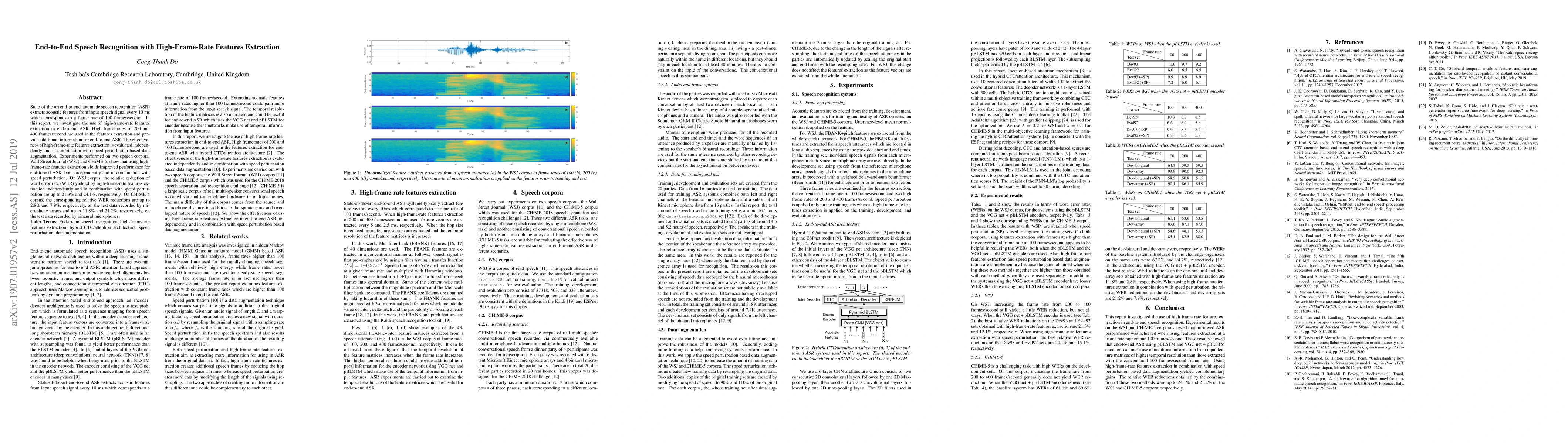 This research paper explores the impact of high-frame-rate feature extraction on the performance of end-to-end automatic speech recognition (ASR) systems. The study finds that using high frame rates of 200 and 400 frames per second provides additional information that enhances ASR accuracy, especially when combined with speed perturbation data augmentation. Experiments conducted on the WSJ and CHiME-5 corpora demonstrate significant improvements in word error rates, with notable reductions ranging from 2.8% to 24.1% depending on the corpus and augmentation method.