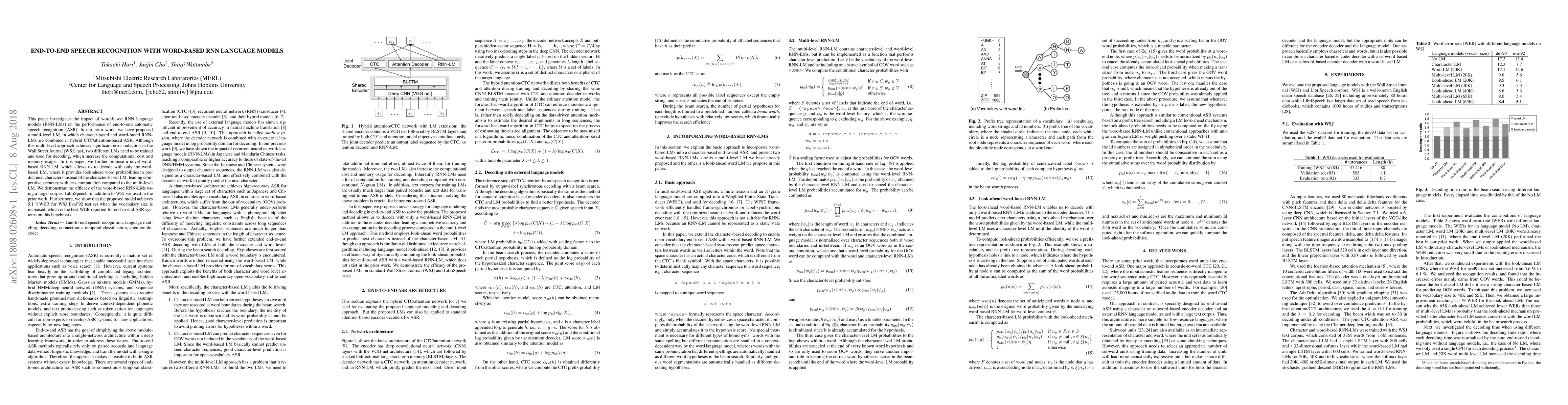 This paper proposes a word-based RNN language model for end-to-end speech recognition, achieving competitive accuracy with reduced computational cost. It demonstrates the efficacy of the model on the LibriSpeech corpus and reports 5.1%WER on the WSJ Eval'92 test set.