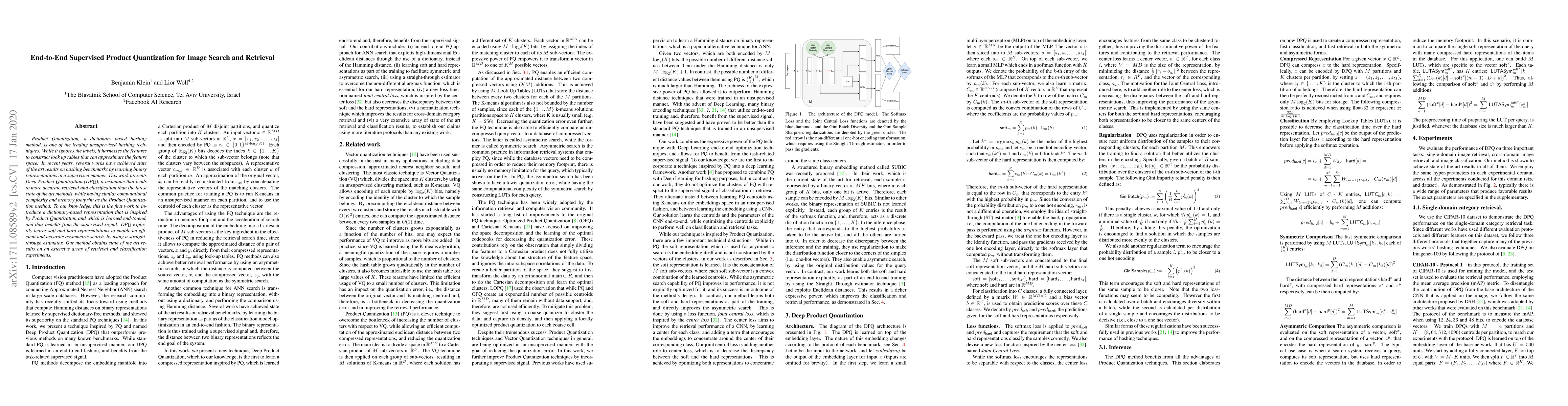 Deep Product Quantization (DPQ) introduces an end-to-end supervised learning approach to enhance product quantization for image search and retrieval, achieving superior accuracy compared to state-of-the-art methods with comparable computational costs. DPQ leverages both soft and hard representations to facilitate efficient asymmetric search and outperforms previous techniques in extensive retrieval and classification benchmarks.