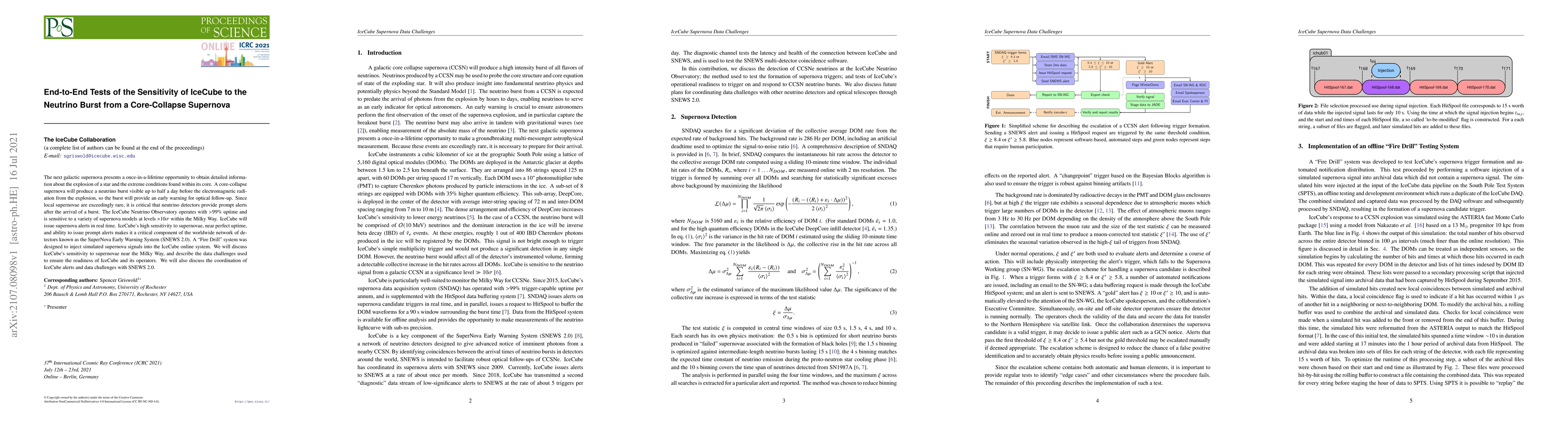 The next galactic supernova presents a once-in-a-lifetime opportunity to obtain detailed information about the explosion of a star and the extreme conditions found within its core. A core-collapse supernova will produce a neutrino burst visible up to half a day before the electromagnetic radiation from the explosion, so the burst will provide an early warning for optical follow-up. Since local supernovae are exceedingly rare, it is critical that neutrino detectors provide prompt alerts after the arrival of a burst. The IceCube Neutrino Observatory operates with $>99\%$ uptime and is sensitive to a variety of supernova models at levels $>10\sigma$ within the Milky Way. IceCube will issue supernova alerts in real time. IceCube's high sensitivity to supernovae, near perfect uptime, and ability to issue prompt alerts makes it a critical component of the worldwide network of detectors known as the SuperNova Early Warning System (SNEWS 2.0). A "Fire Drill" system was designed to inject simulated supernova signals into the IceCube online system. We will discuss IceCube's sensitivity to supernovae near the Milky Way, and describe the data challenges used to ensure the readiness of IceCube and its operators. We will also discuss the coordination of IceCube alerts and data challenges with SNEWS 2.0.