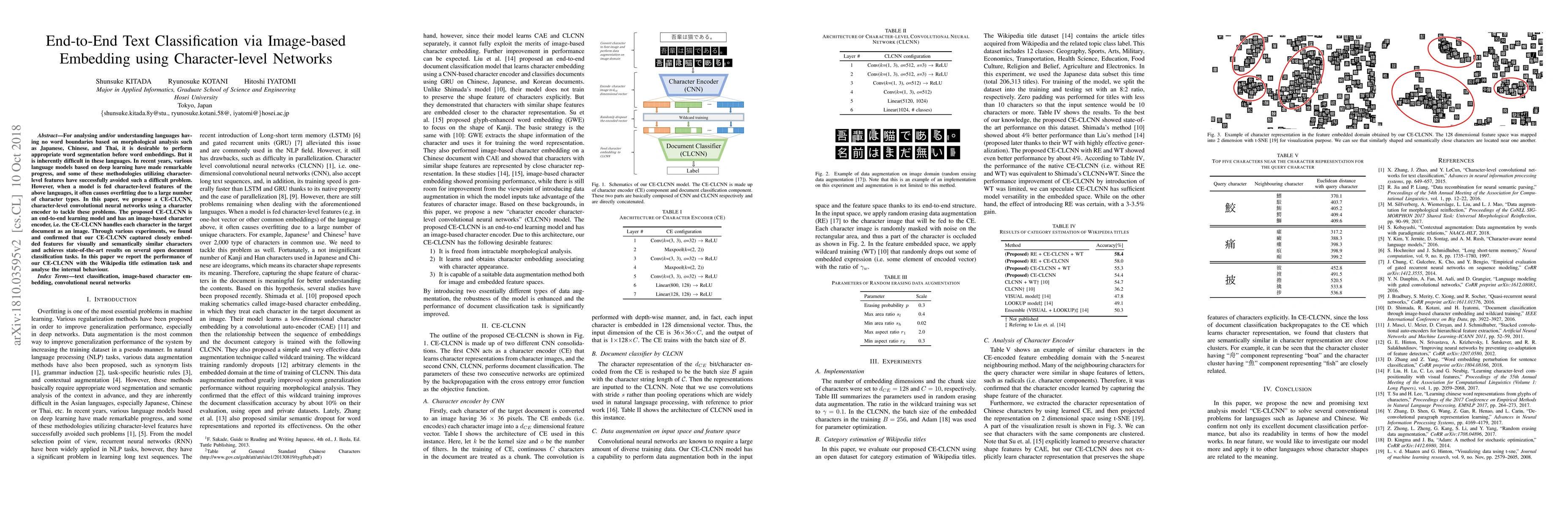 This paper proposes CE-CLCNN, a character-level convolutional neural network with an image-based character encoder for end-to-end text classification in languages without clear word boundaries. The model successfully captures visually and semantically similar character features, achieving state-of-the-art results in document classification tasks.