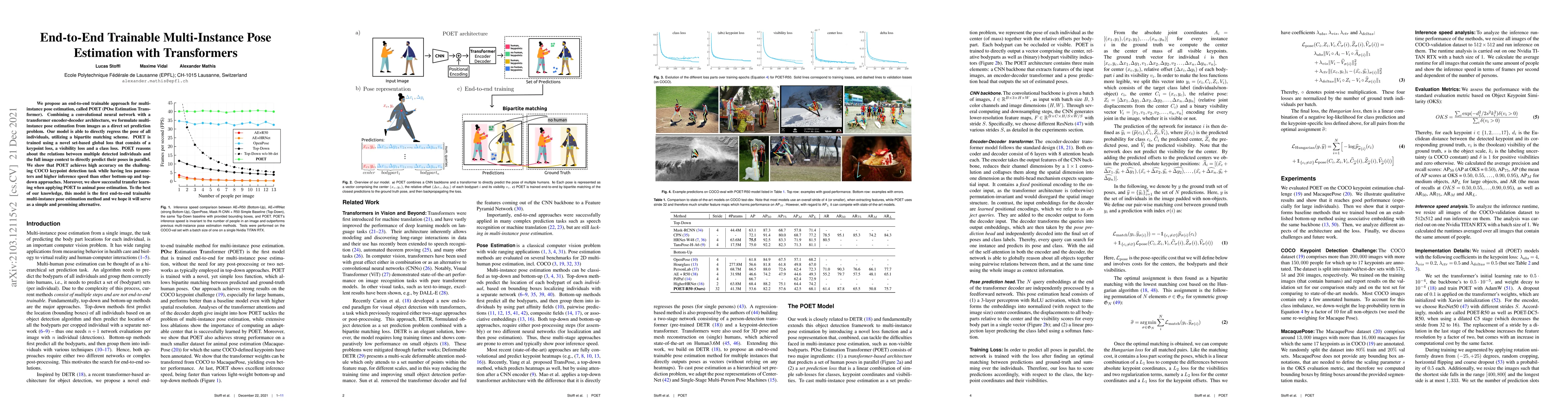 This paper introduces POET, an end-to-end trainable transformer-based model for multi-instance pose estimation, combining CNNs with a transformer for direct set prediction. POET achieves high accuracy and efficiency on the COCO keypoint detection task and demonstrates successful transfer learning for animal pose estimation.
