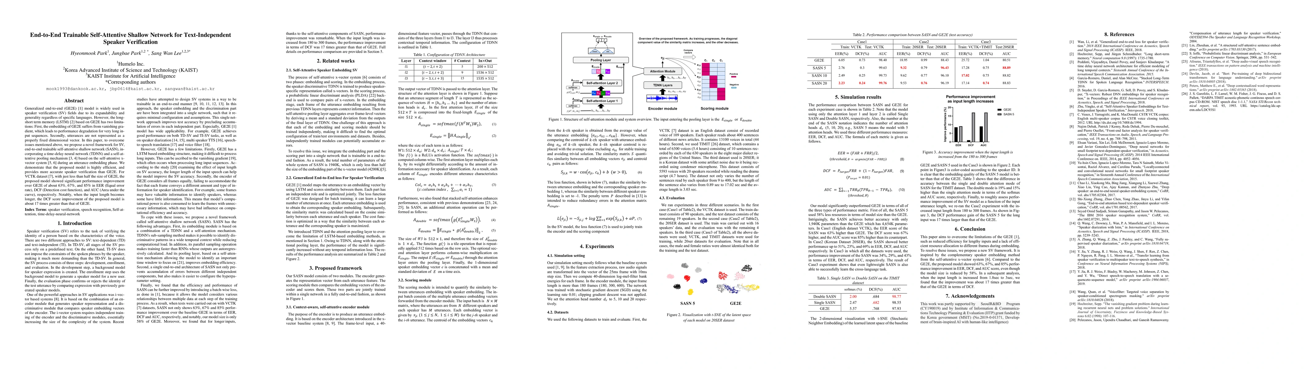 This paper proposes a novel end-to-end trainable self-attentive shallow network (SASN) for text-independent speaker verification, which incorporates a time-delay neural network and self-attentive pooling to overcome limitations of LSTM-based models. The proposed model shows significant performance improvements over generalized end-to-end models, especially for longer input sequences.