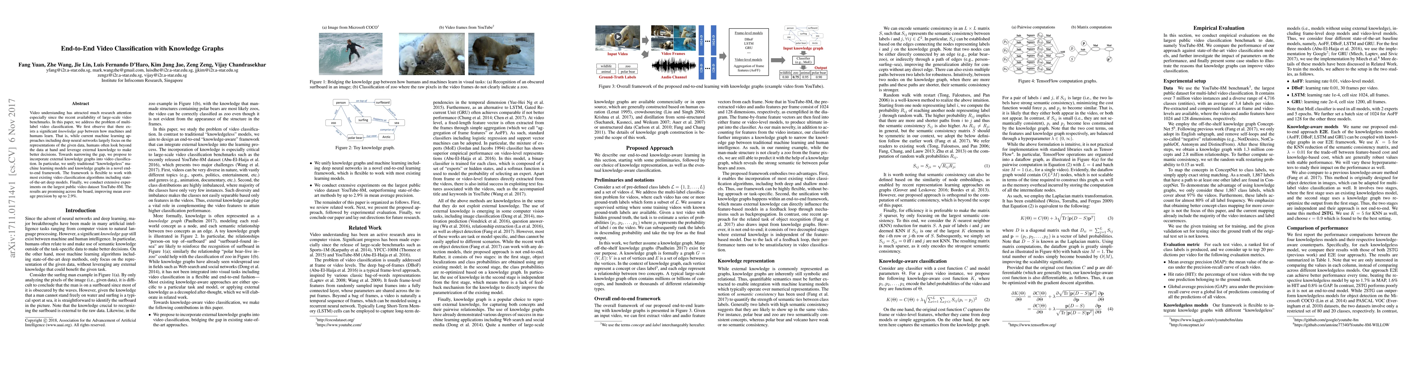 This paper proposes an end-to-end framework for multi-label video classification that integrates external knowledge graphs to bridge the gap between machine and human learning. The framework enhances traditional machine learning models by incorporating knowledge graphs, achieving up to a 2.9% improvement in mean average precision on the YouTube-8M dataset.