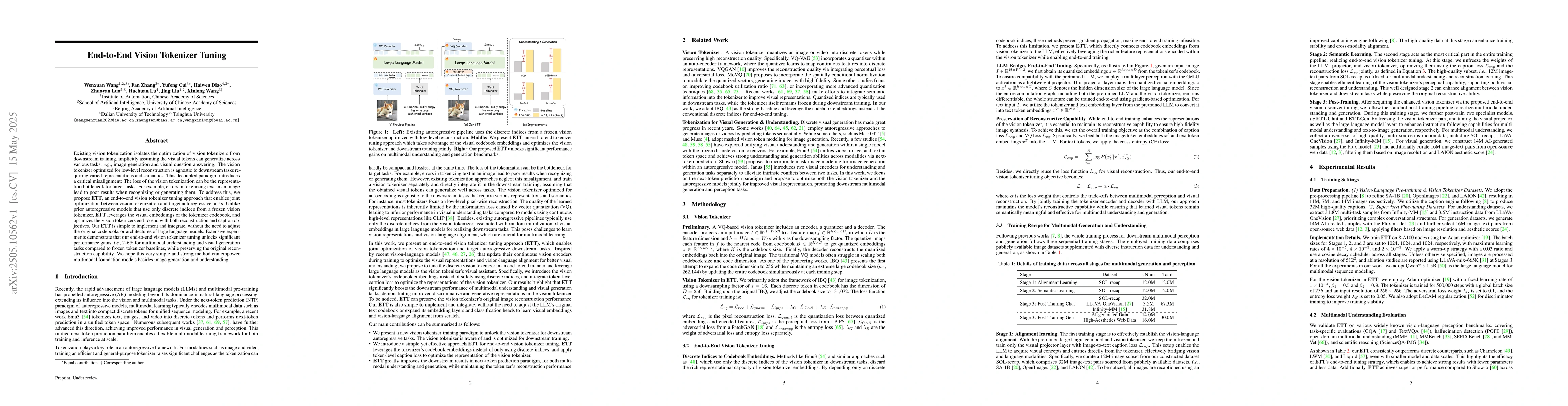 Researchers propose a new method called End-to-End Vision Tokenizer Tuning to improve performance in image generation and understanding tasks by optimizing vision tokenizers simultaneously with downstream autoregressive tasks.