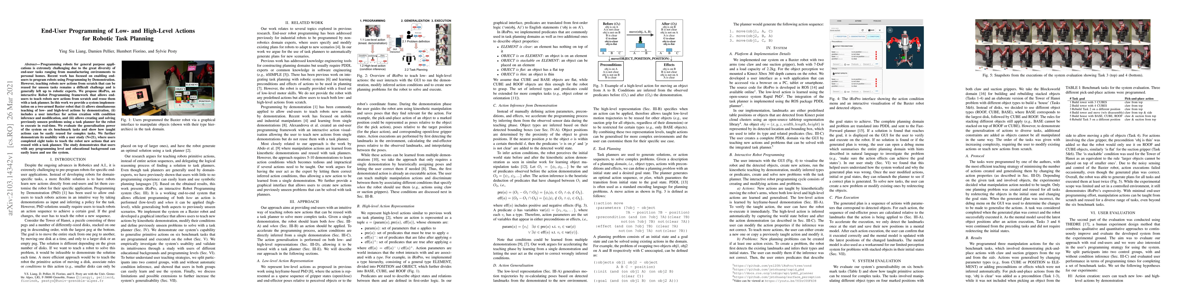 Programming robots for general purpose applications is extremely challenging due to the great diversity of end-user tasks ranging from manufacturing environments to personal homes. Recent work has focused on enabling end-users to program robots using Programming by Demonstration. However, teaching robots new actions from scratch that can be reused for unseen tasks remains a difficult challenge and is generally left up to robotic experts. We propose iRoPro, an interactive Robot Programming framework that allows end-users to teach robots new actions from scratch and reuse them with a task planner. In this work we provide a system implementation on a two-armed Baxter robot that (i) allows simultaneous teaching of low- and high-level actions by demonstration, (ii) includes a user interface for action creation with condition inference and modification, and (iii) allows creating and solving previously unseen problems using a task planner for the robot to execute in real-time. We evaluate the generalisation power of the system on six benchmark tasks and show how taught actions can be easily reused for complex tasks. We further demonstrate its usability with a user study (N=21), where users completed eight tasks to teach the robot new actions that are reused with a task planner. The study demonstrates that users with any programming level and educational background can easily learn and use the system.