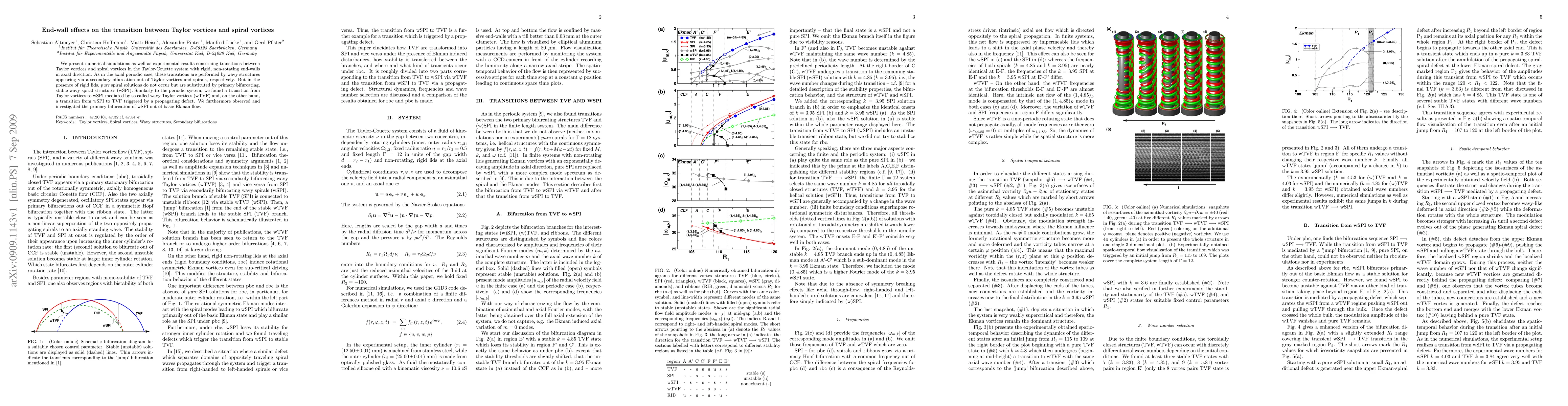 This study investigates the transition dynamics between Taylor vortices and spiral vortices in a Taylor-Couette system with rigid end-walls, revealing that wavy spiral structures (wSPI) replace pure spirals due to end-wall effects. The transition is mediated by wavy Taylor vortices (wTVF) and involves a propagating defect.
