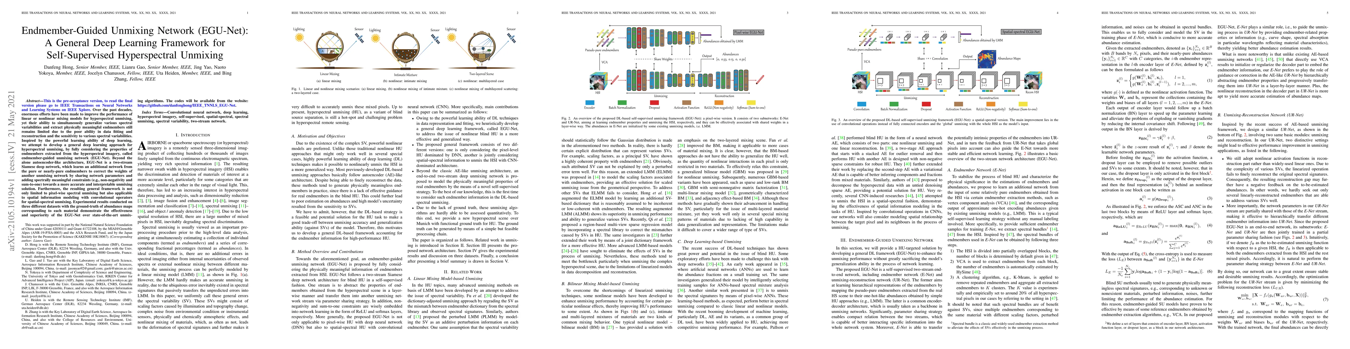 The Endmember-Guided Unmixing Network (EGU-Net) is a novel deep learning framework for hyperspectral unmixing that leverages endmember properties to improve accuracy and interpretability. The two-stream Siamese network with shared parameters and spectral constraints outperforms existing methods, demonstrating effectiveness across various datasets.