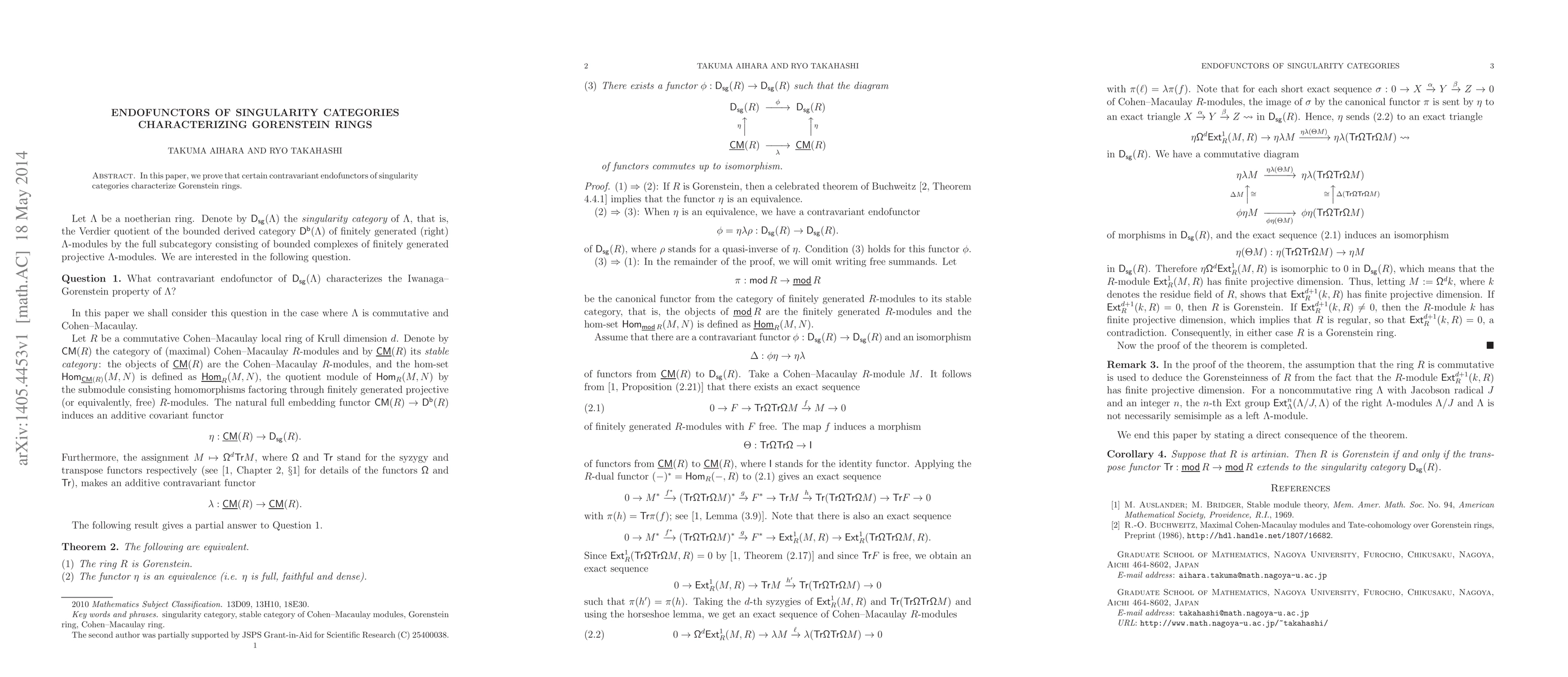 Summary: This paper demonstrates that specific contravariant endofunctors within singularity categories uniquely identify Gorenstein rings, providing a new categorical perspective on these algebraic structures.