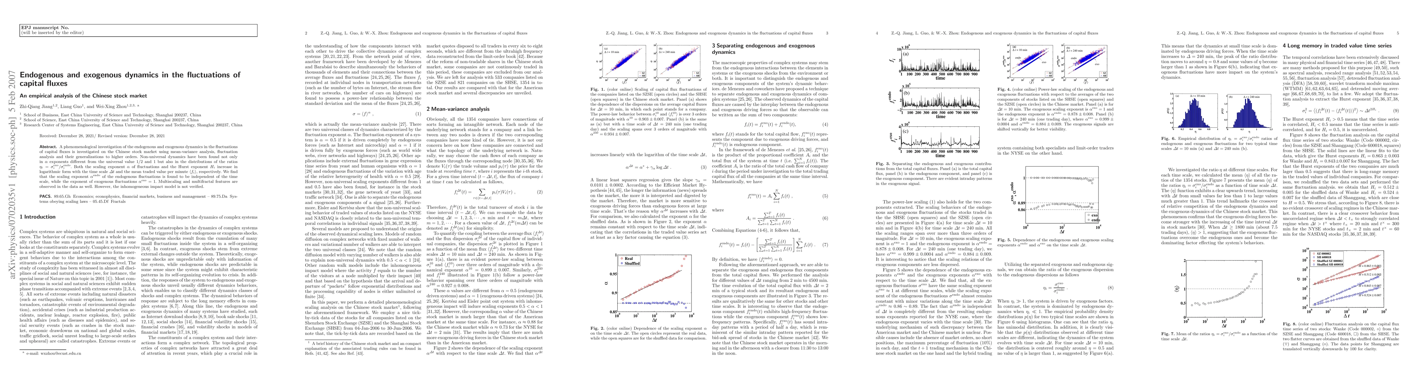 the fluctuations of capital fluxes is investigated on the Chinese stock market
