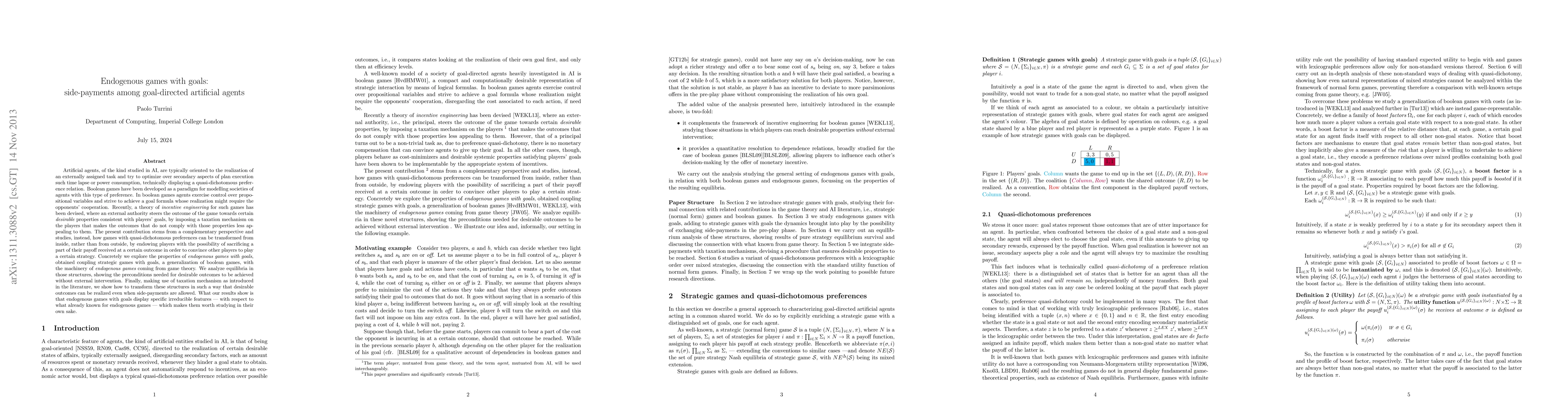 This paper explores how artificial agents with quasi-dichotomous preferences can transform boolean games from within by allowing side-payments to influence strategy choices. It examines equilibria in endogenous games with goals, revealing unique features that justify their study beyond traditional endogenous games.