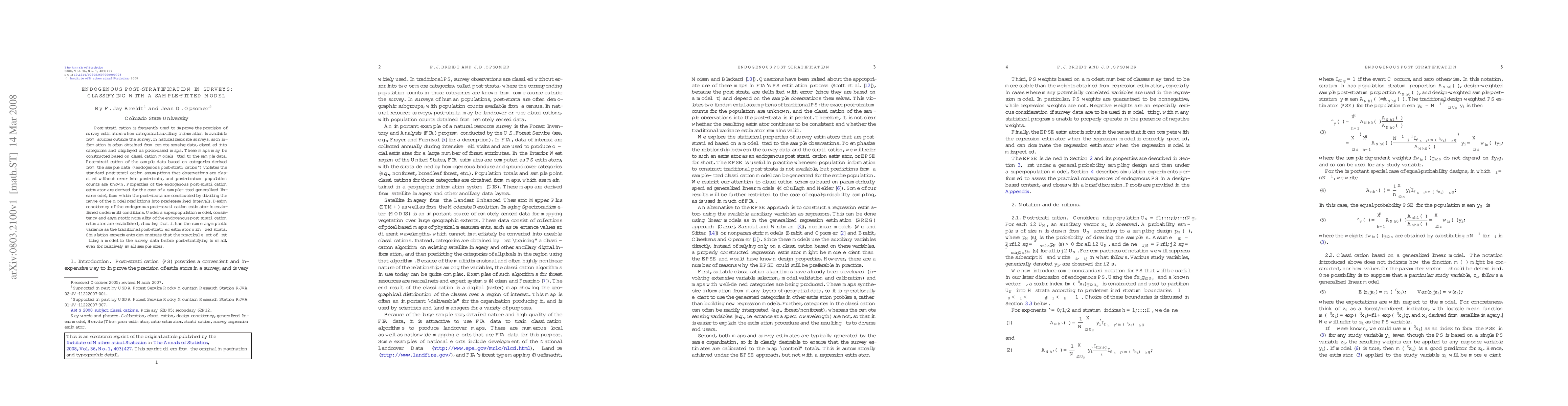 Post-stratification is frequently used to improve the precision of survey estimators when categorical auxiliary information is available from sources outside the survey. In natural resource surveys, such information is often obtained from remote sensing data, classified into categories and displayed as pixel-based maps. These maps may be constructed based on classification models fitted to the sample data. Post-stratification of the sample data based on categories derived from the sample data (``endogenous post-stratification'') violates the standard post-stratification assumptions that observations are classified without error into post-strata, and post-stratum population counts are known. Properties of the endogenous post-stratification estimator are derived for the case of a sample-fitted generalized linear model, from which the post-strata are constructed by dividing the range of the model predictions into predetermined intervals. Design consistency of the endogenous post-stratification estimator is established under mild conditions. Under a superpopulation model, consistency and asymptotic normality of the endogenous post-stratification estimator are established, showing that it has the same asymptotic variance as the traditional post-stratified estimator with fixed strata. Simulation experiments demonstrate that the practical effect of first fitting a model to the survey data before post-stratifying is small, even for relatively small sample sizes.