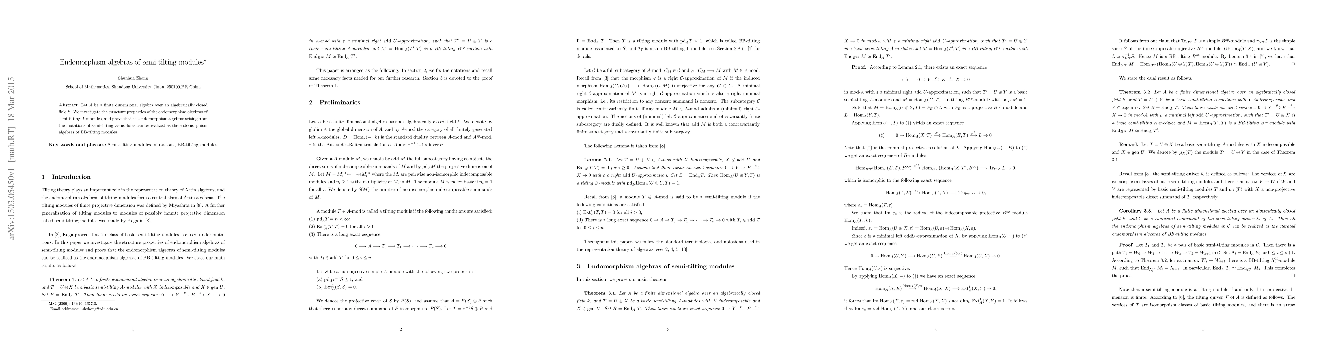 The paper presents a proof that certain endomorphism algebras of semi-tilting modules are isomorphic to those of BB-tilting modules, advancing the theory of representation of algebras.