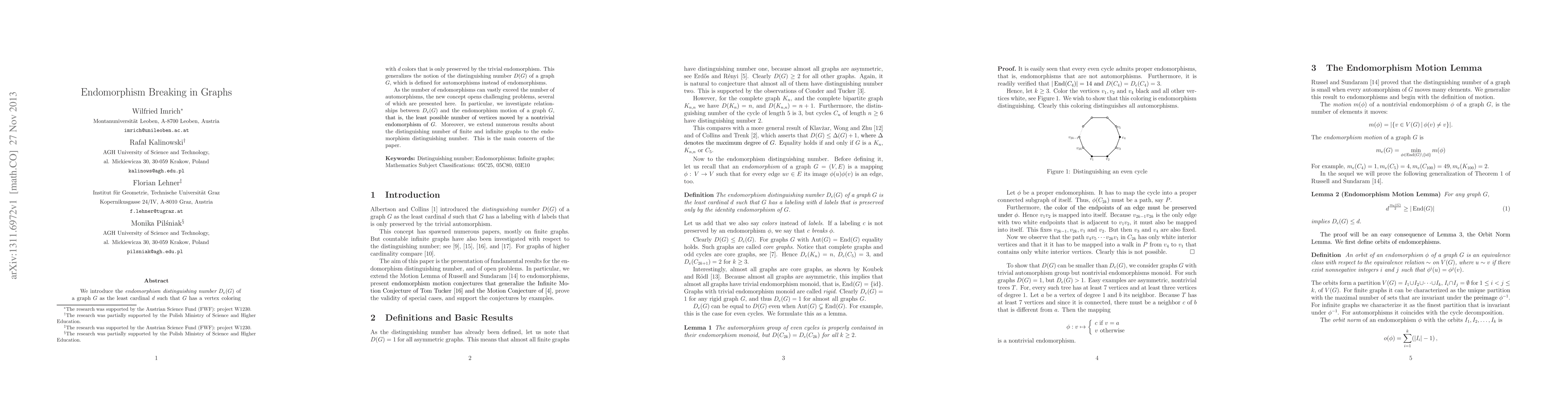 We introduce the {\it endomorphism distinguishing number} $D_e(G)$ of a graph $G$ as the least cardinal $d$ such that $G$ has a vertex coloring with $d$ colors that is only preserved by the trivial endomorphism. This generalizes the notion of the distinguishing number $D(G)$ of a graph $G$, which is defined for automorphisms instead of endomorphisms. As the number of endomorphisms can vastly exceed the number of automorphisms, the new concept opens challenging problems, several of which are presented here. In particular, we investigate relationships between $D_e(G)$ and the endomorphism motion of a graph $G$, that is, the least possible number of vertices moved by a nontrivial endomorphism of $G$. Moreover, we extend numerous results about the distinguishing number of finite and infinite graphs to the endomorphism distinguishing number. This is the main concern of the paper.