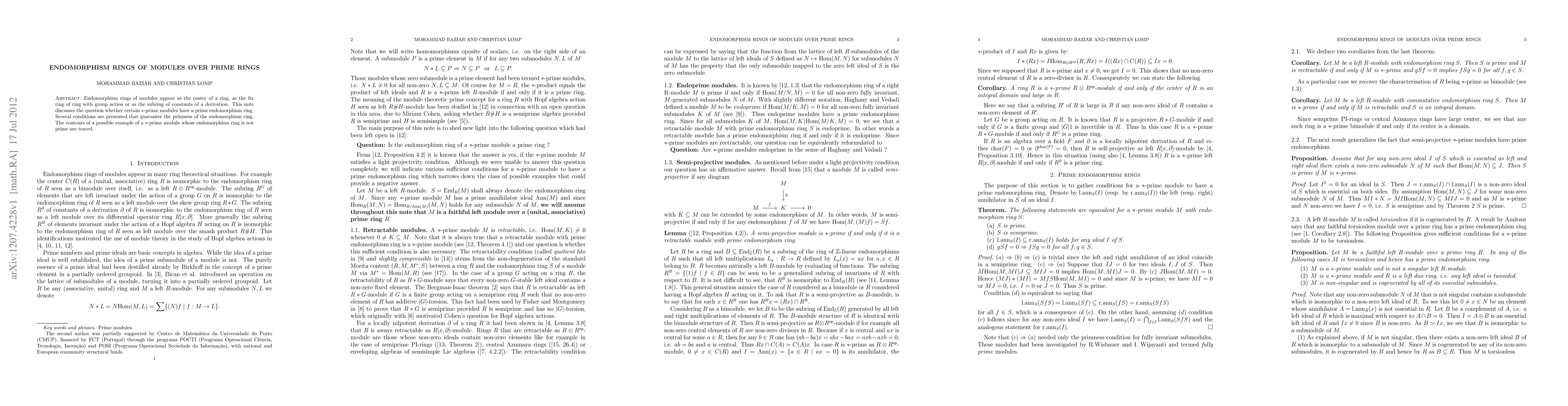 Endomorphism rings of modules appear as the center of a ring, as the fix ring of ring with group action or as the subring of constants of a derivation. This note discusses the question whether certain *-prime modules (introduced by Bican et al.) have a prime endomorphism ring. Several conditions are presented that guarantee the primness of the endomorphism ring. The contours of a possible example of a *-prime module whose endomorphism ring is not prime are traced.