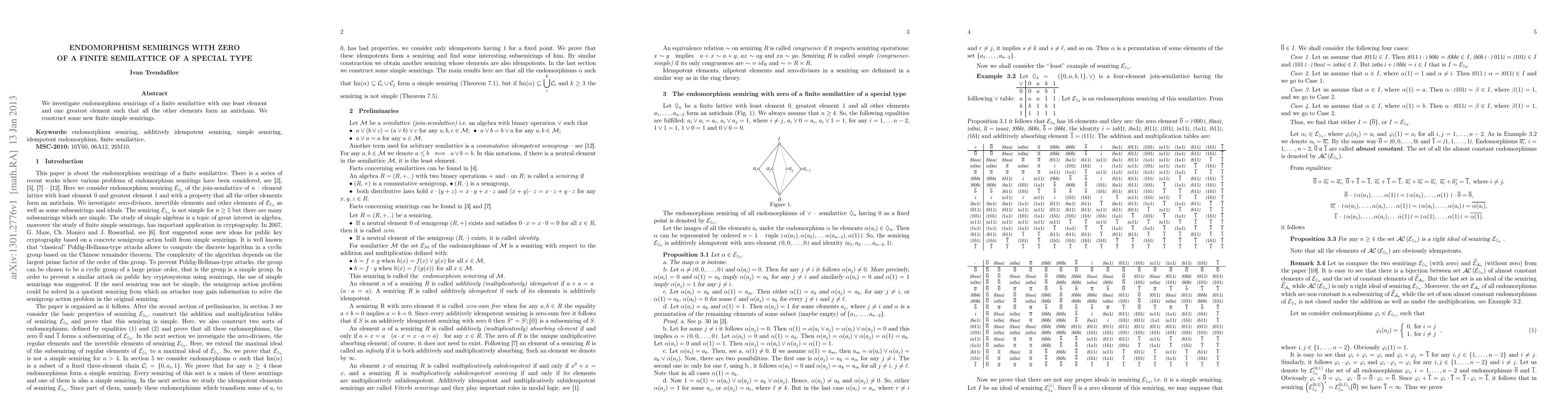 This paper explores the endomorphism semirings of a specific finite semilattice characterized by a unique least and greatest element, with all other elements forming an antichain. The study results in the construction of new finite simple semirings.