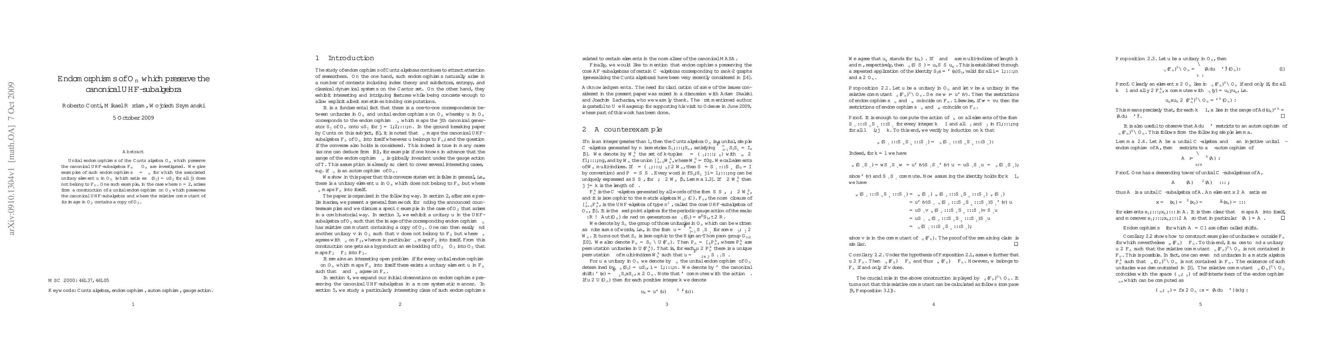 This paper investigates unital endomorphisms of the Cuntz algebra O_n that preserve the canonical UHF-subalgebra F_n. It provides examples where the associated unitary element does not belong to F_n, including a specific case for n=2 where the relative commutant contains a copy of O_2.
