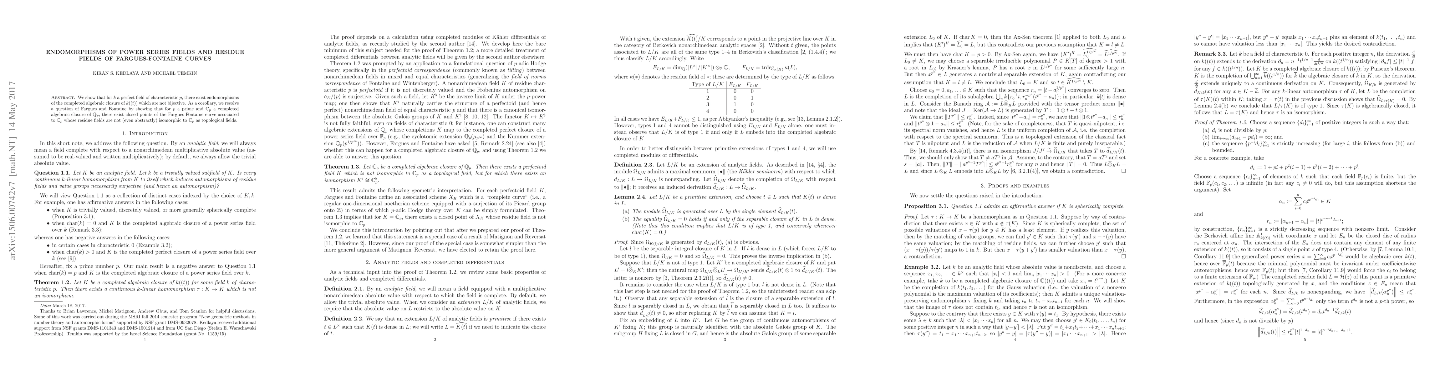 We show that for k a perfect field of characteristic p, there exist endomorphisms of the completed algebraic closure of k((t)) which are not bijective. As a corollary, we resolve a question of Fargues and Fontaine by showing that for p a prime and C_p a completed algebraic closure of Q_p, there exist closed points of the Fargues-Fontaine curve associated to C_p whose residue fields are not (even abstractly) isomorphic to C_p as topological fields.