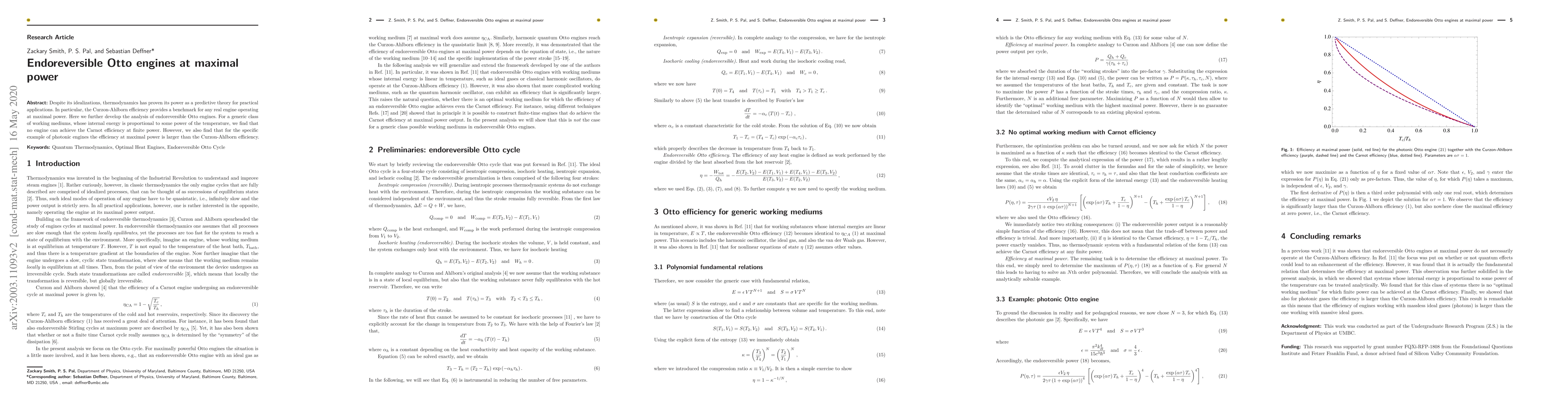 The research used a combination of analytical and numerical methods to study endoreversible Otto engines at maximum power.