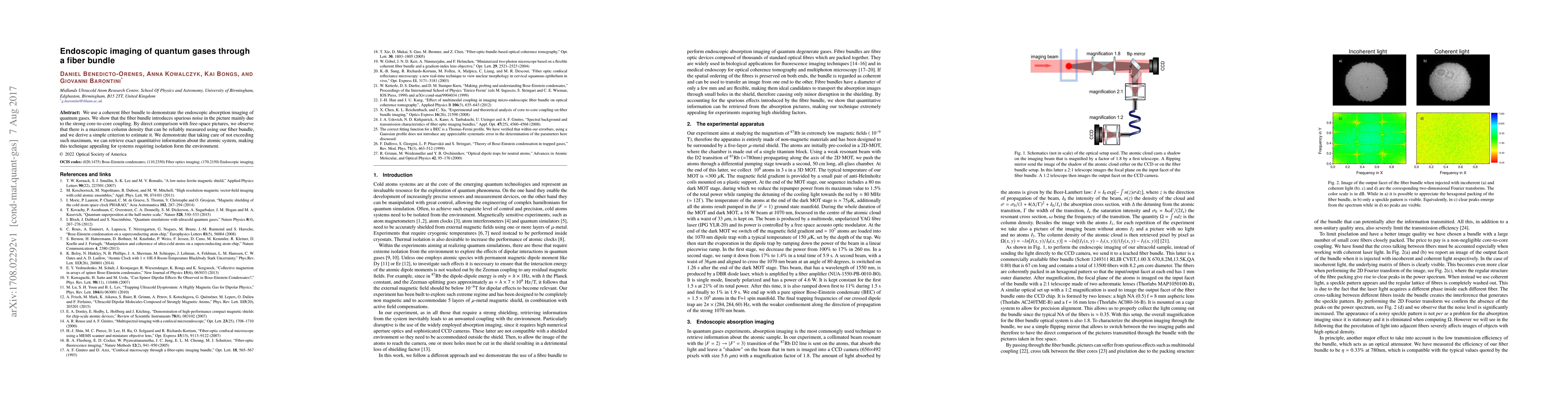 This paper demonstrates endoscopic absorption imaging of quantum gases using a coherent fiber bundle, identifying noise from core-to-core coupling and establishing a maximum column density for reliable measurements. By adhering to this limit, the technique can provide precise quantitative data, making it suitable for isolated quantum systems.