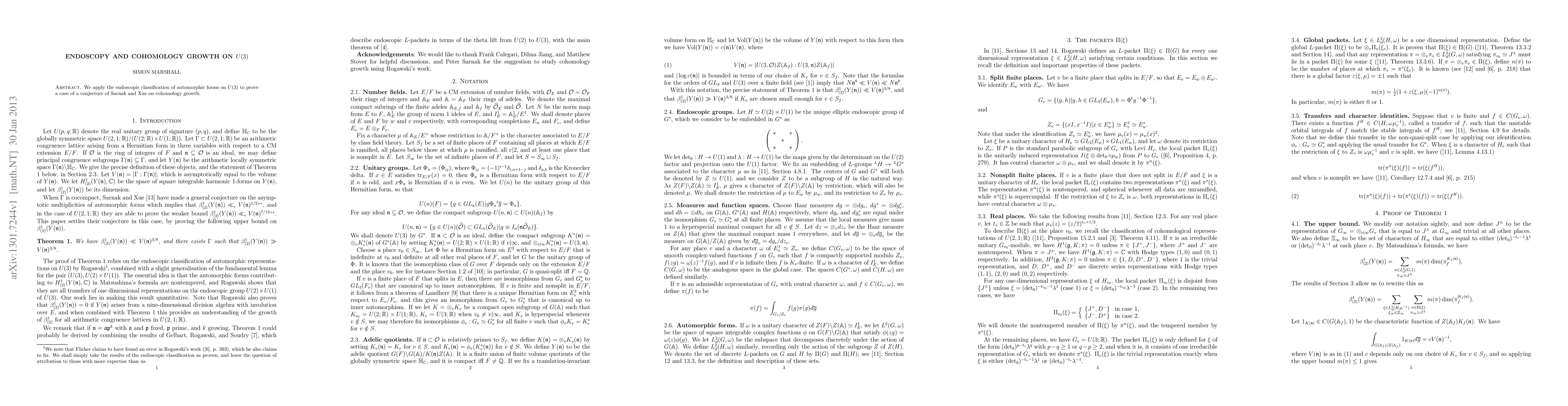 We apply the endoscopic classification of automorphic forms on U(3) to prove a case of a conjecture of Sarnak and Xue on cohomology growth.