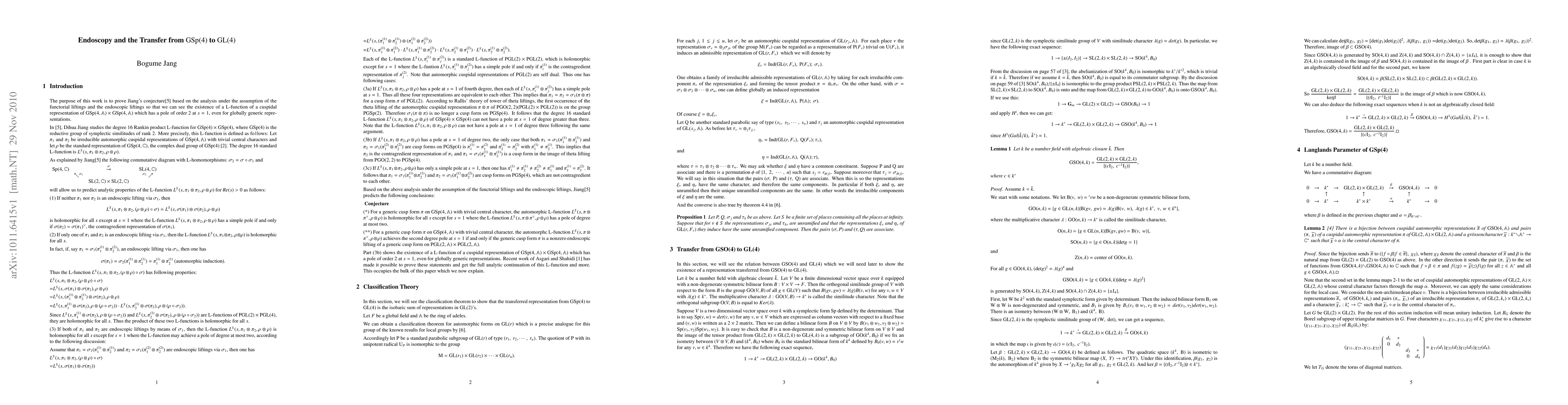 This paper demonstrates the existence of an L-function for a cuspidal representation of GSp(4) with a specific pole order, and shows that the Weil transfer from GSO(4) aligns with Langlands Functoriality, facilitated by endoscopic techniques linking GSp(4) and GL(4).
