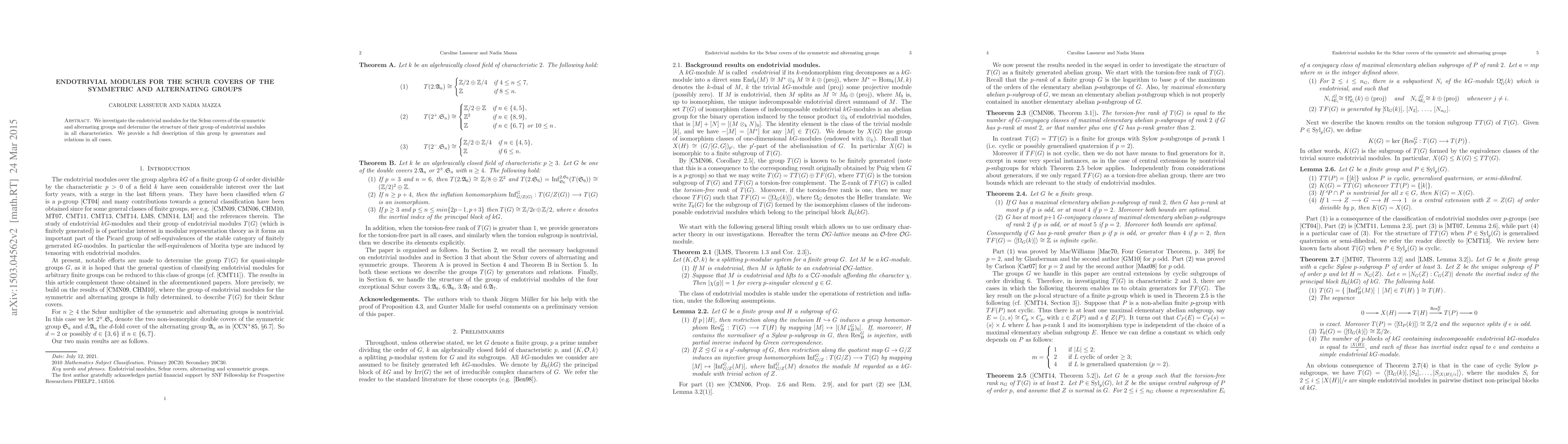 Summary: This paper determines the structure of endotrivial modules for Schur covers of symmetric and alternating groups, providing a complete description of their group of endotrivial modules through generators and relations across all characteristics.