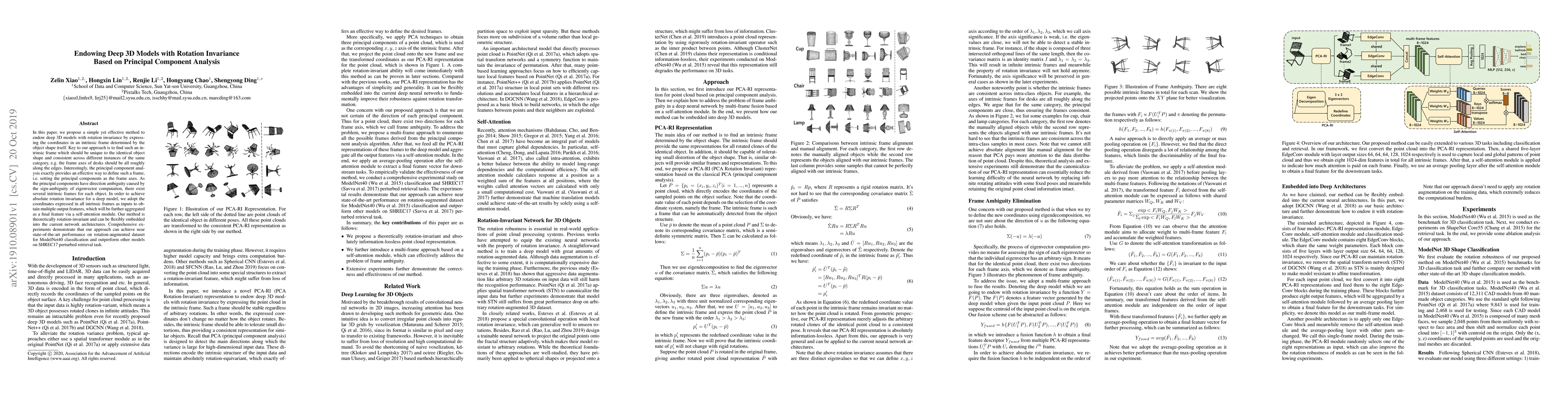 Researchers propose a method to make 3D models rotation-invariant using Principal Component Analysis to define an intrinsic frame unique to each object shape, achieving near state-of-the-art performance on certain tasks.