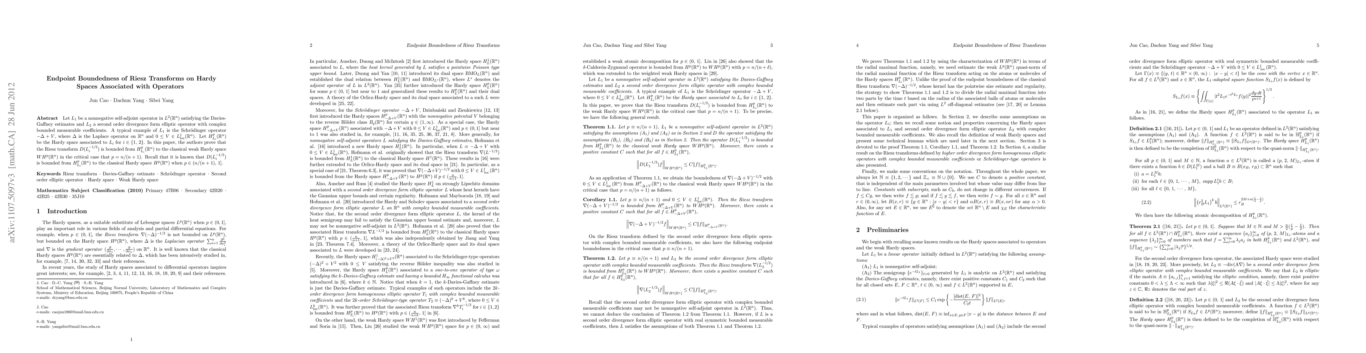 Let $L_1$ be a nonnegative self-adjoint operator in $L^2({\mathbb R}^n)$ satisfying the Davies-Gaffney estimates and $L_2$ a second order divergence form elliptic operator with complex bounded measurable coefficients. A typical example of $L_1$ is the Schr\"odinger operator $-\Delta+V$, where $\Delta$ is the Laplace operator on ${\mathbb R}^n$ and $0\le V\in L^1_{\mathop\mathrm{loc}} ({\mathbb R}^n)$. Let $H^p_{L_i}(\mathbb{R}^n)$ be the Hardy space associated to $L_i$ for $i\in\{1,\,2\}$. In this paper, the authors prove that the Riesz transform $D (L_i^{-1/2})$ is bounded from $H^p_{L_i}(\mathbb{R}^n)$ to the classical weak Hardy space $WH^p(\mathbb{R}^n)$ in the critical case that $p=n/(n+1)$. Recall that it is known that $D (L_i^{-1/2})$ is bounded from $H^p_{L_i}(\mathbb{R}^n)$ to the classical Hardy space $H^p(\mathbb{R}^n)$ when $p\in(n/(n+1),\,1]$.