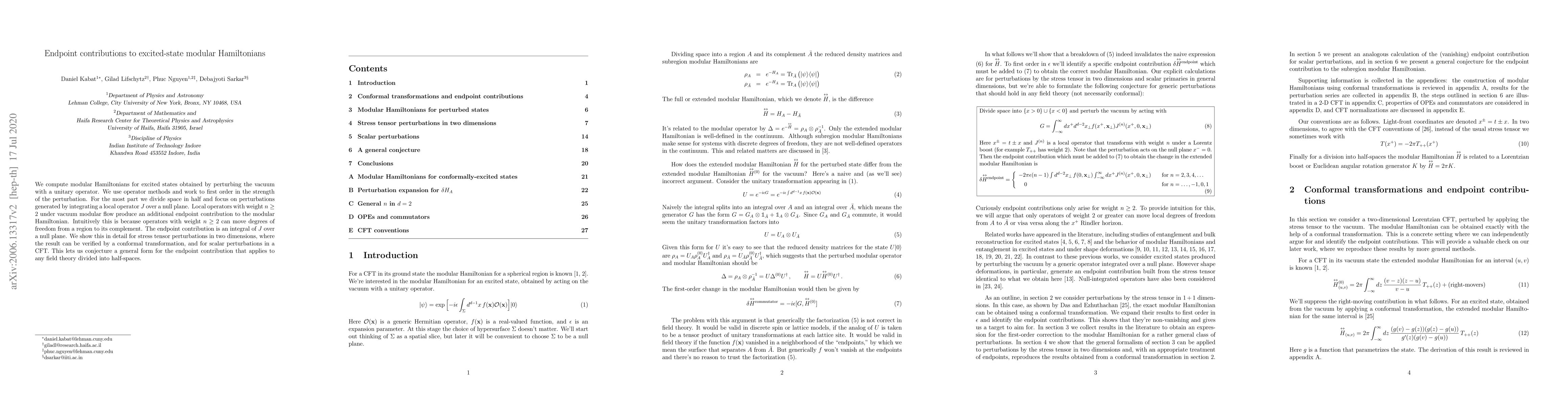 This paper computes modular Hamiltonians for excited states created by perturbing the vacuum with a unitary operator, focusing on endpoint contributions from local operators with weight $n \geq 2$. It demonstrates these contributions in two-dimensional stress tensor and scalar perturbations, leading to a conjecture for a general form applicable to any field theory divided into half-spaces.