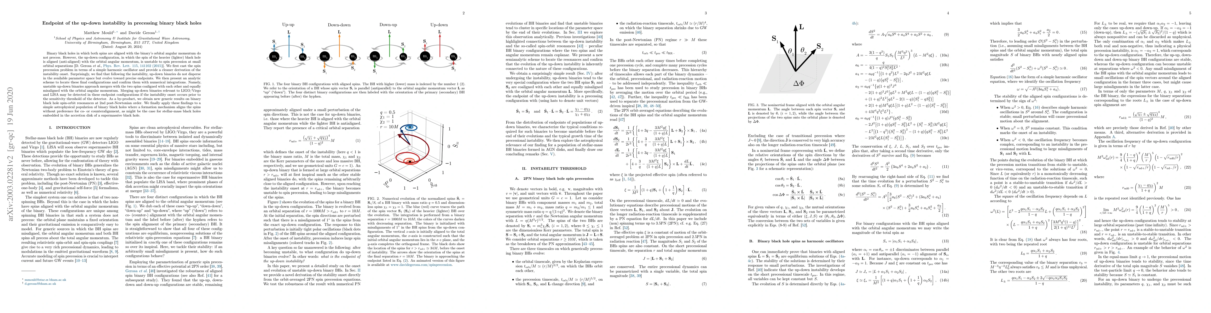Binary black holes in which both spins are aligned with the binary's orbital angular momentum do not precess. However, the up-down configuration, in which the spin of the heavier (lighter) black hole is aligned (anti-aligned) with the orbital angular momentum, is unstable to spin precession at small orbital separations. We first cast the spin precession problem in terms of a simple harmonic oscillator and provide a cleaner derivation of the instability onset. Surprisingly, we find that following the instability, up-down binaries do not disperse in the available parameter space but evolve toward precise endpoints. We then present an analytic scheme to locate these final configurations and confirm them with numerical integrations. Namely, unstable up-down binaries approach mergers with the two spins coaligned with each other and equally misaligned with the orbital angular momentum. Merging up-down binaries relevant to LIGO/Virgo and LISA may be detected in these endpoint configurations if the instability onset occurs prior to the sensitivity threshold of the detector. As a by-product, we obtain new generic results on binary black hole spin-orbit resonances at 2nd~post-Newtonian order. We finally apply these findings to a simple astrophysical population of binary black holes where a formation mechanism aligns the spins without preference for co- or counteralignment, as might be the case for stellar-mass black holes embedded in the accretion disk of a supermassive black hole.