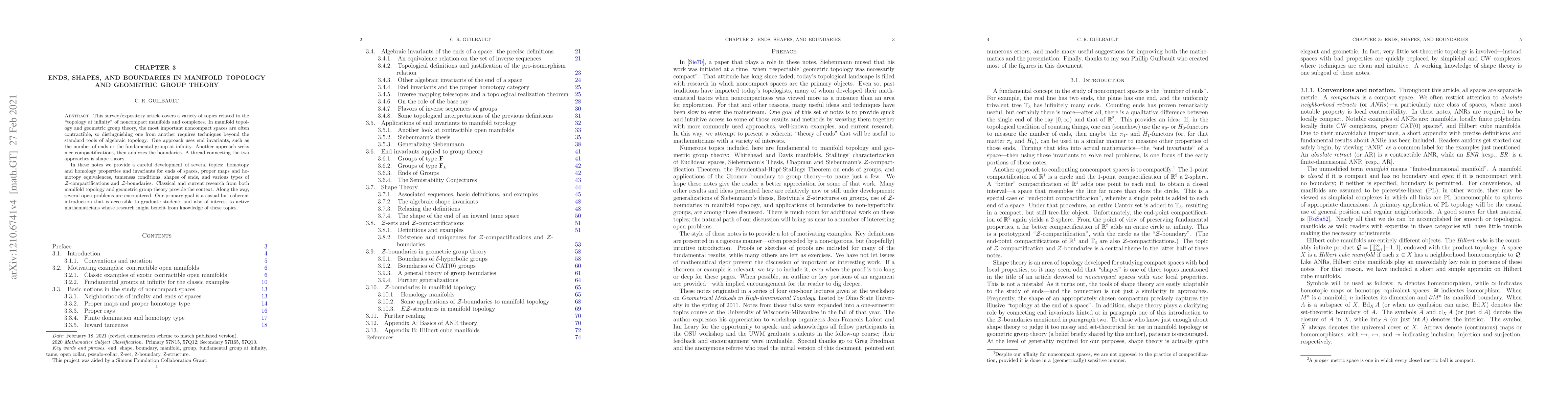 This paper surveys advanced topics in manifold topology and geometric group theory, focusing on the "topology at infinity" of noncompact spaces. It explores the use of end invariants and compactification techniques to distinguish contractible spaces, emphasizing shape theory as a unifying thread.