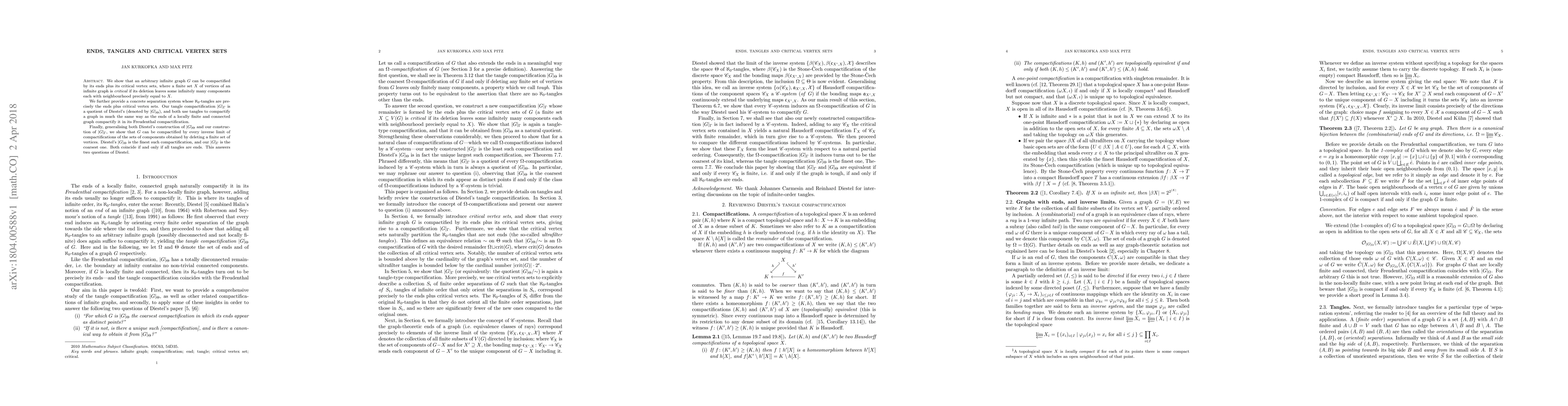 We show that an arbitrary infinite graph $G$ can be compactified by its ends plus its critical vertex sets, where a finite set $X$ of vertices of an infinite graph is critical if its deletion leaves some infinitely many components each with neighbourhood precisely equal to $X$. We further provide a concrete separation system whose $\aleph_0$-tangles are precisely the ends plus critical vertex sets. Our tangle compactification $\vert G\vert_{\Gamma}$ is a quotient of Diestel's (denoted by $\vert G\vert_{\Theta}$), and both use tangles to compactify a graph in much the same way as the ends of a locally finite and connected graph compactify it in its Freudenthal compactification. Finally, generalising both Diestel's construction of $\vert G\vert_{\Theta}$ and our construction of $\vert G\vert_{\Gamma}$, we show that $G$ can be compactified by every inverse limit of compactifications of the sets of components obtained by deleting a finite set of vertices. Diestel's $\vert G\vert_{\Theta}$ is the finest such compactification, and our $\vert G\vert_{\Gamma}$ is the coarsest one. Both coincide if and only if all tangles are ends. This answers two questions of Diestel.