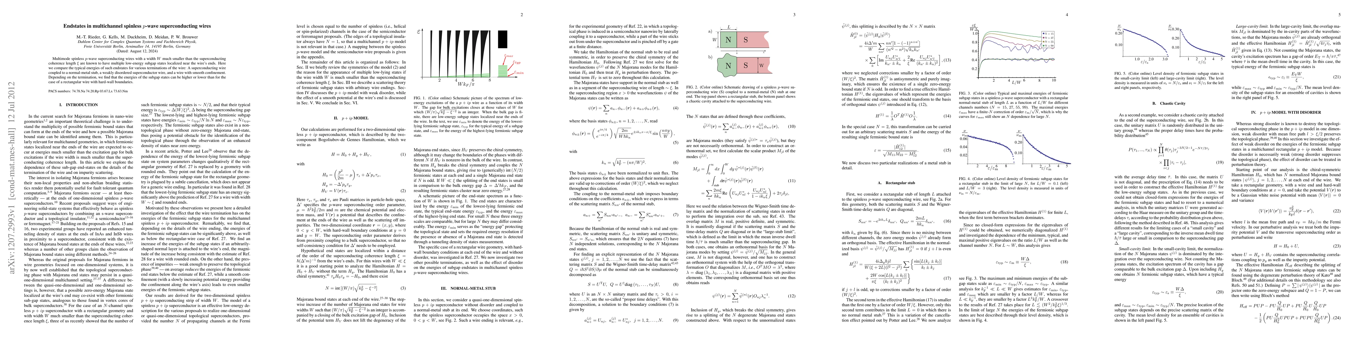 Multimode spinless p-wave superconducting wires with a width W much smaller than the superconducting coherence length \xi are known to have multiple low-energy subgap states localized near the wire's ends. Here we compare the typical energies of such endstates for various terminations of the wire: A superconducting wire coupled to a normal-metal stub, a weakly disordered superconductor wire and a wire with smooth confinement. Depending on the termination, we find that the energies of the subgap states can be higher or lower than for the case of a rectangular wire with hard-wall boundaries.