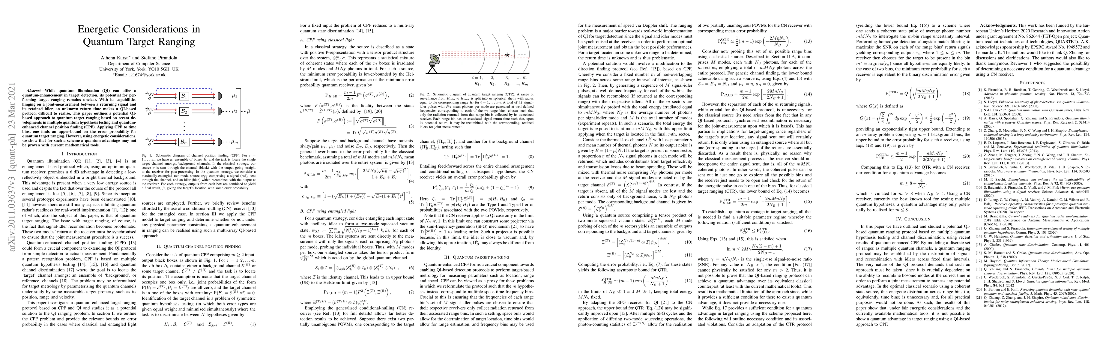 The study used recent developments in multiple quantum hypothesis testing and quantum-enhanced channel position finding to outline a method, but ultimately concluded that the scheme's performance is limited by its reliance on energy.