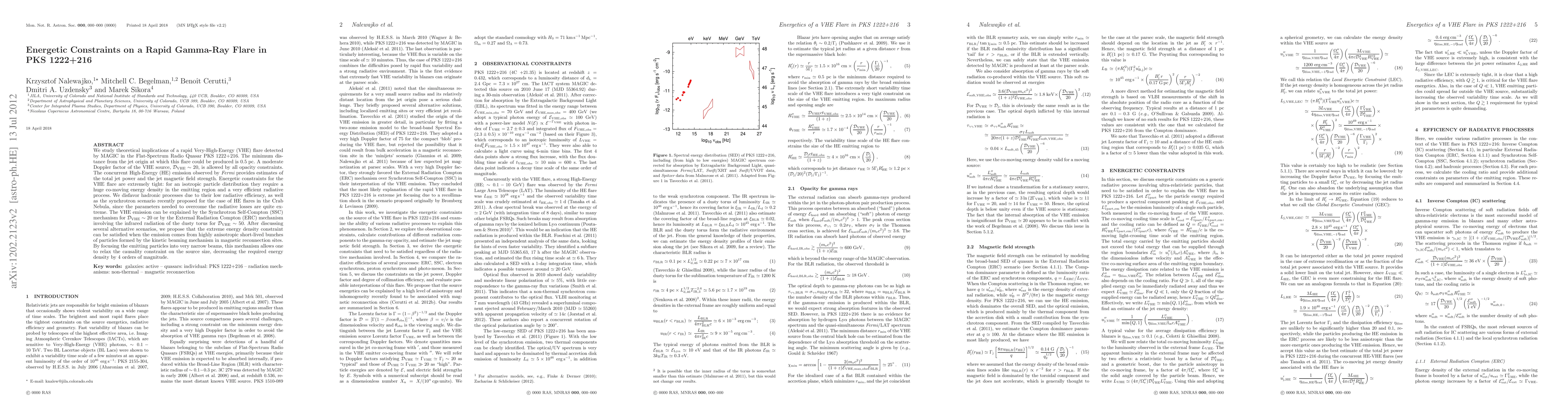 The research investigates a rapid Very-High-Energy (VHE) flare in PKS 1222+216, finding that it could originate at a distance of 0.5 pc from the jet source with a moderate Doppler factor. The study rules out hadronic processes and extreme parameters for the synchrotron scenario. The VHE emission is proposed to be explained by the Synchrotron Self-Compton (SSC) mechanism or External Radiation Compton (ERC) mechanism, with the hypothesis that highly anisotropic, short-lived particle bunches from magnetic reconnection sites can satisfy the extreme energy density constraint.