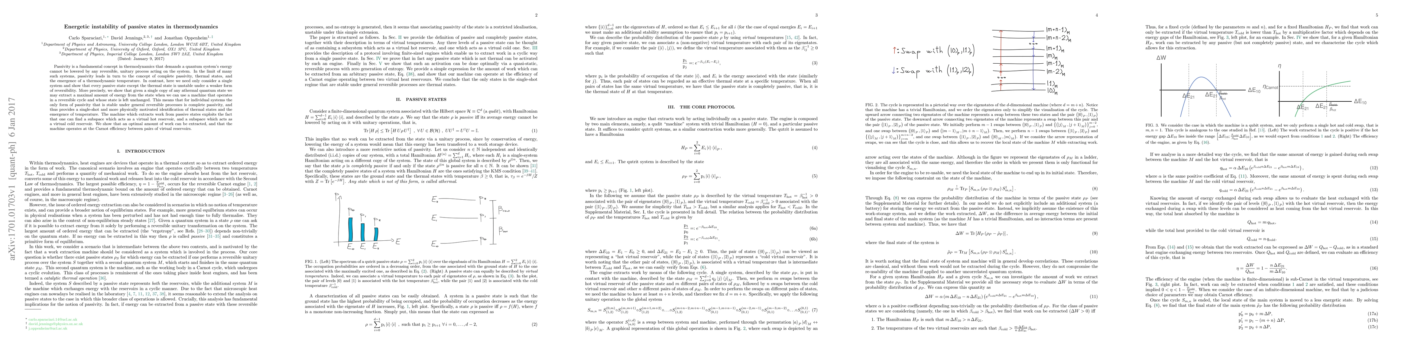 Passivity is a fundamental concept in thermodynamics that demands a quantum system's energy cannot be lowered by any reversible, unitary process acting on the system. In the limit of many such systems, passivity leads in turn to the concept of complete passivity, thermal states, and the emergence of a thermodynamic temperature. In contrast, here we need only consider a single system and show that every passive state except the thermal state is unstable under a weaker form of reversibility. More precisely, we show that given a single copy of any athermal quantum state we may extract a maximal amount of energy from the state when we can use a machine that operates in a reversible cycle and whose state is left unchanged. This means that for individual systems the only form of passivity that is stable under general reversible processes is complete passivity, and thus provides a single-shot and more physically motivated identification of thermal states and the emergence of temperature. The machine which extracts work from passive states exploits the fact that one can find a subspace which acts as a virtual hot reservoir, and a subspace which acts as a virtual cold reservoir. We show that an optimal amount of work can be extracted, and that the machine operates at the Carnot efficiency between pairs of virtual reservoirs.