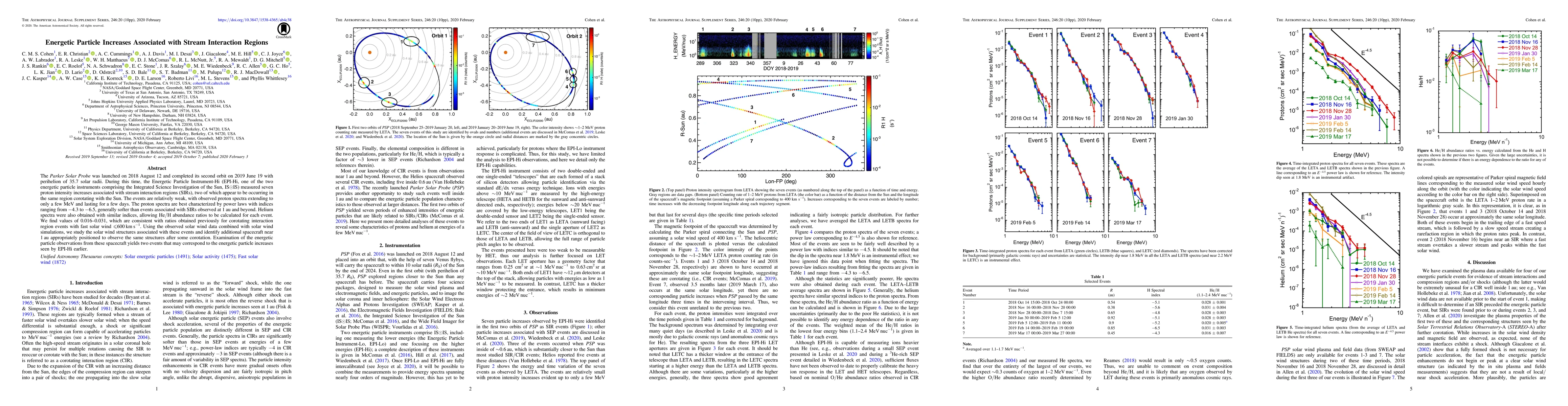 The Parker Solar Probe detected seven proton intensity increases linked to stream interaction regions (SIRs) during its second orbit, with spectra extending to a few MeV and indices ranging from -4.3 to -6.5. The He/H abundance ratios observed are consistent with previous SIR events, and follow-up observations at 1 au suggest similar energetic particle increases.