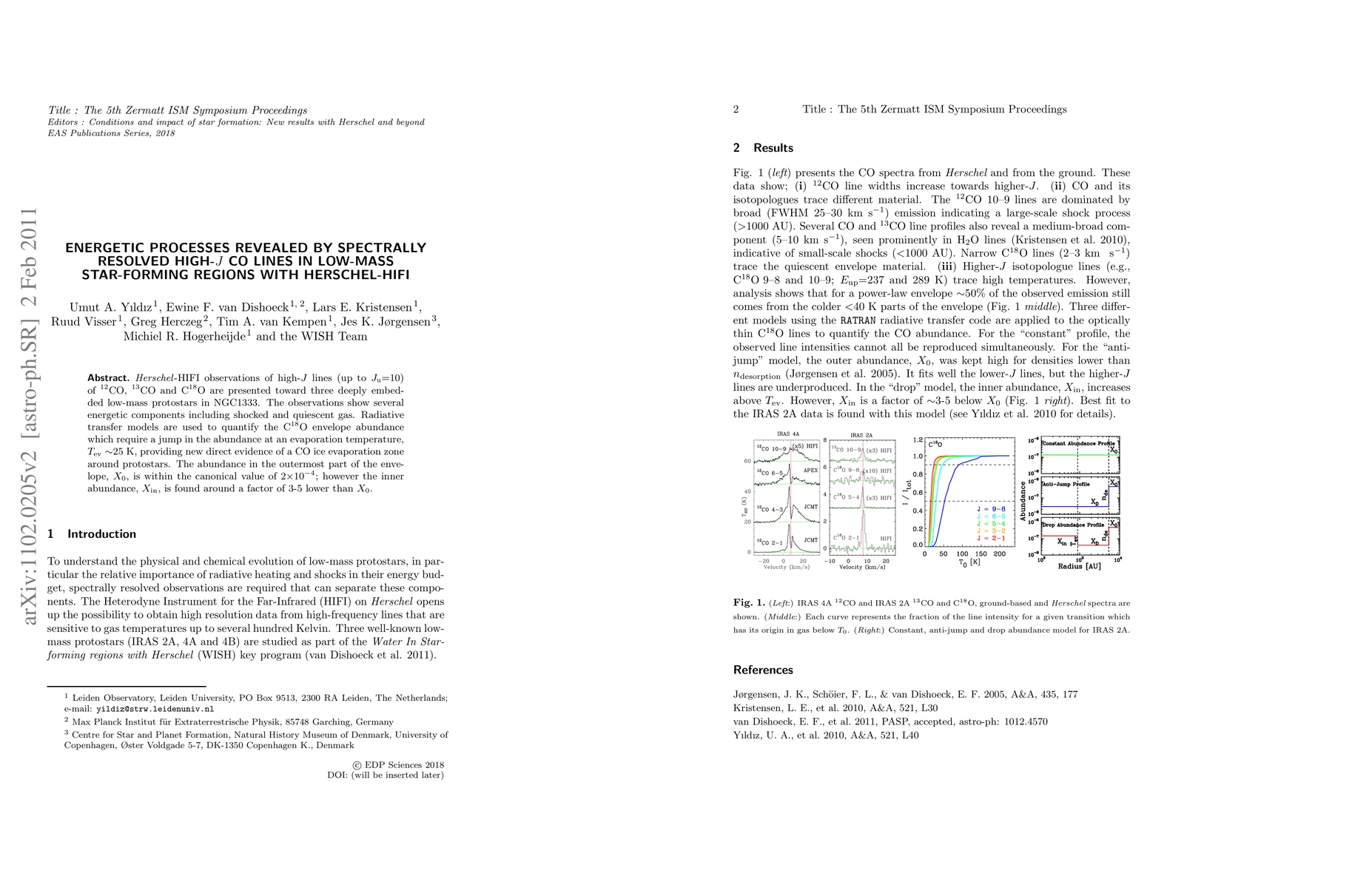 This study uses Herschel-HIFI observations of high-J CO lines to identify energetic components in low-mass star-forming regions, revealing shocked and quiescent gas. The findings indicate a CO ice evaporation zone around protostars, with a significant drop in C18O abundance in the inner envelope compared to the outer regions.