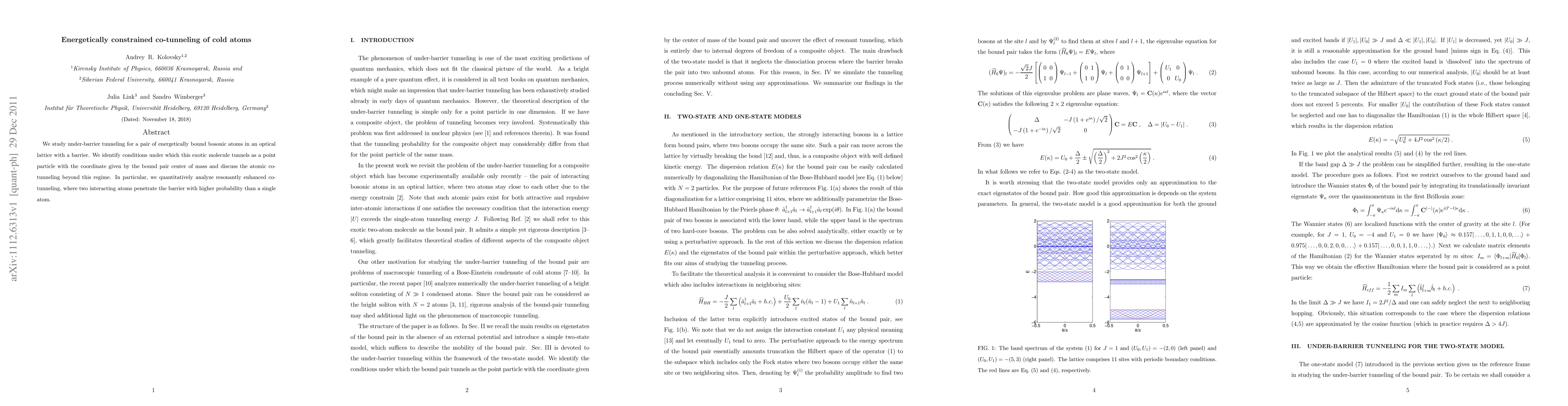 This paper investigates the under-barrier tunneling behavior of a pair of energetically bound bosonic atoms in an optical lattice, identifying conditions where they tunnel as a single entity. It also explores resonantly enhanced co-tunneling, revealing that two interacting atoms can penetrate barriers more effectively than a single atom.