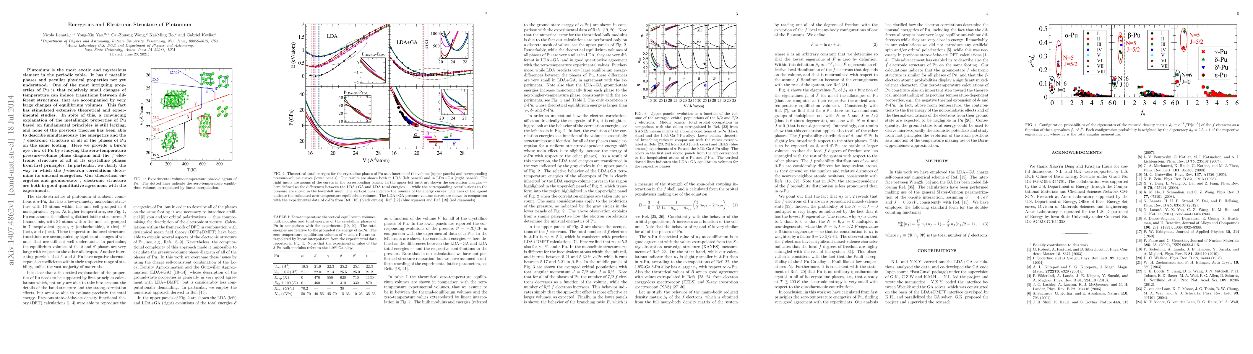 This paper investigates the energetics and electronic structure of Plutonium, revealing how $f$-electron correlations influence its unique properties and providing a comprehensive first-principles analysis of its various phases, which aligns well with experimental data.