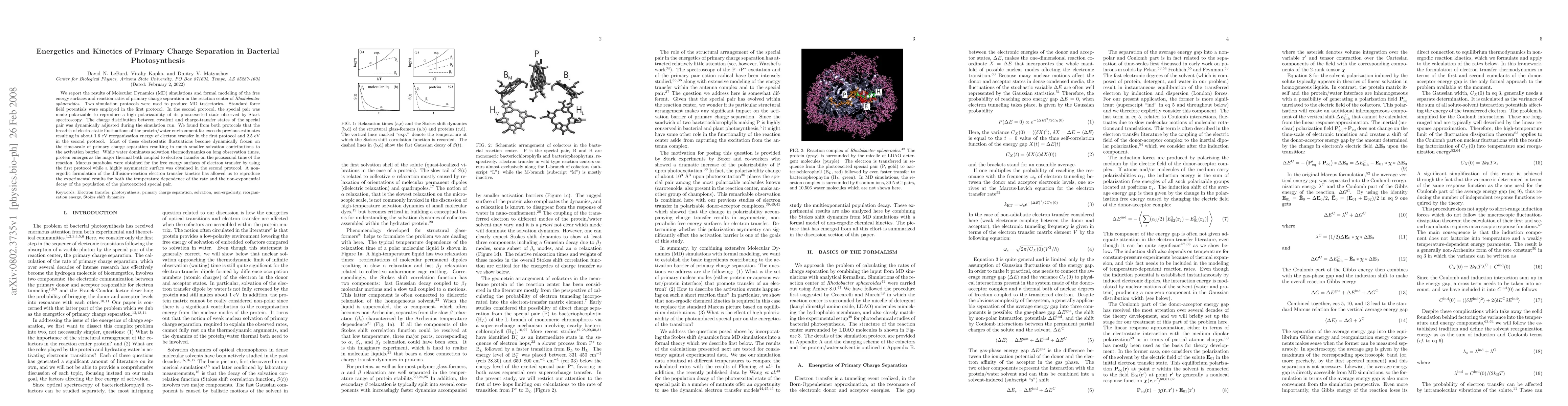 This paper uses Molecular Dynamics simulations and modeling to study the energetics and kinetics of primary charge separation in \textit{Rhodobacter sphaeroides}'s reaction center, finding significant electrostatic fluctuations and high reorganization energies, which influence the electron transfer process and match experimental results.