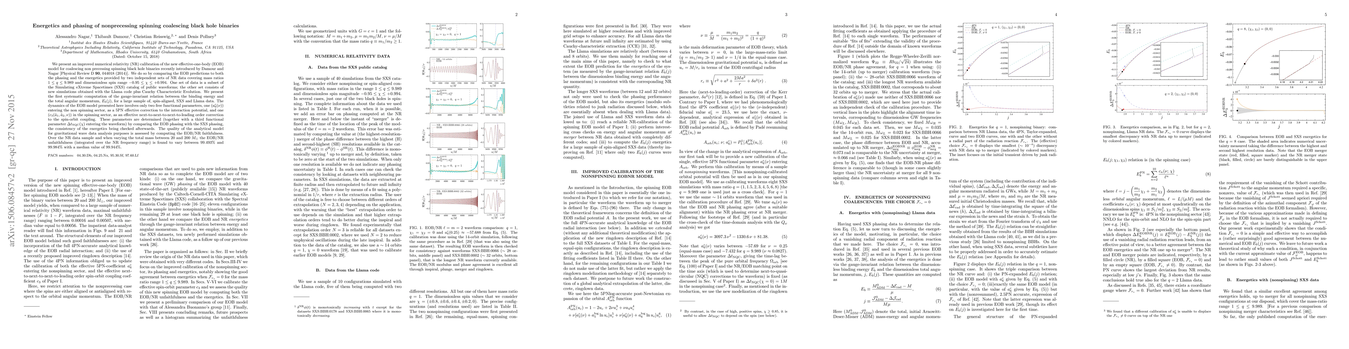 We present an improved numerical relativity (NR) calibration of the new effective-one-body (EOB) model for coalescing non precessing spinning black hole binaries recently introduced by Damour and Nagar [Physical Review D 90, 044018 (2014)]. We do so by comparing the EOB predictions to both the phasing and the energetics provided by two independent sets of NR data covering mass ratios $1\leq q \leq 9.989$ and dimensionless spin range $-0.95\leq \chi\leq +0.994$. One set of data is a subset of the Simulating eXtreme Spacetimes (SXS) catalog of public waveforms; the other set consists of new simulations obtained with the Llama code plus Cauchy Characteristic Evolution. We present the first systematic computation of the gauge-invariant relation between the binding energy and the total angular momentum, $E_{b}(j)$, for a large sample of, spin-aligned, SXS and Llama data. The dynamics of the EOB model presented here involves only two free functional parameters, one ($a_6^c(\nu)$) entering the non spinning sector, as a 5PN effective correction to the interaction potential, and one ($c_3(\tilde{a}_1,\tilde{a}_2,\nu))$ in the spinning sector, as an effective next-to-next-to-next-to-leading order correction to the spin-orbit coupling. These parameters are determined (together with a third functional parameter $\Delta t_{\rm NQC}(\chi)$ entering the waveform) by comparing the EOB phasing with the SXS phasing, the consistency of the energetics being checked afterwards. The quality of the analytical model for gravitational wave data analysis purposes is assessed by computing the EOB/NR faithfulness. Over the NR data sample and when varying the total mass between 20 and 200~$M_\odot$ the EOB/NR unfaithfulness (integrated over the NR frequency range) is found to vary between $99.493\%$ and $99.984\%$ with a median value of $99.944\%$.