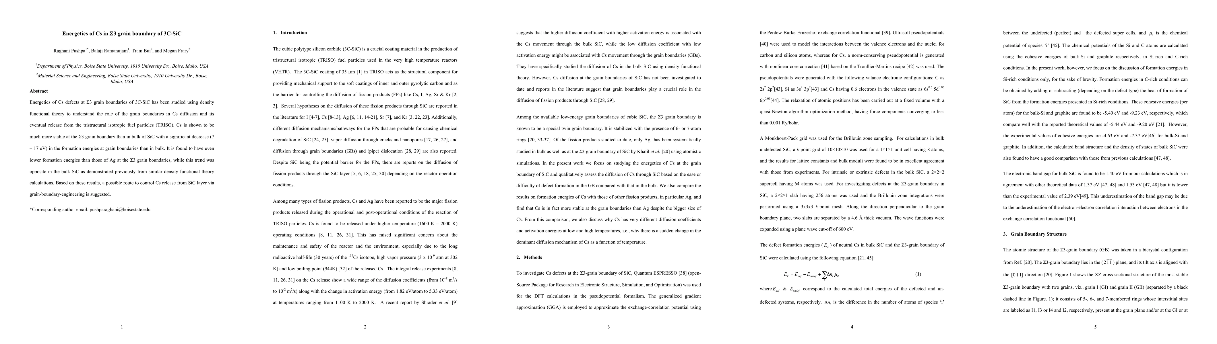 This study uses density functional theory to investigate the energetics of Cs defects at Sigma3 grain boundaries in 3C-SiC, revealing that Cs is significantly more stable at these boundaries than in the bulk, suggesting a potential method to control Cs release through grain-boundary engineering.
