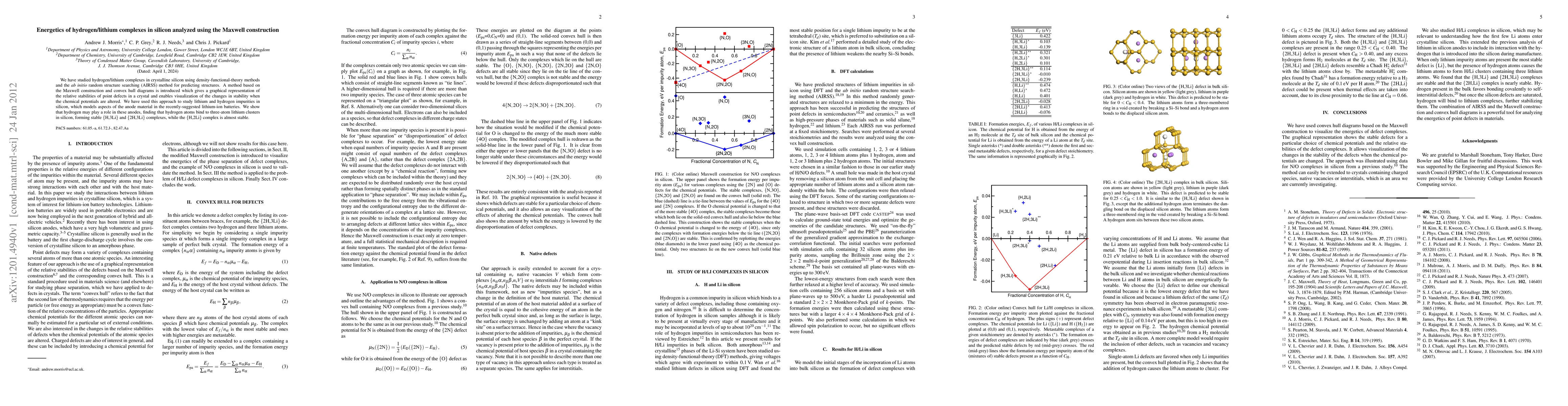 This paper employs density-functional theory and the Maxwell construction to analyze hydrogen/lithium complexes in silicon, revealing stable {H,3Li} and {2H,3Li} complexes and suggesting hydrogen's role in lithium-ion battery anodes. The Maxwell construction provides a graphical method for visualizing defect stability changes.